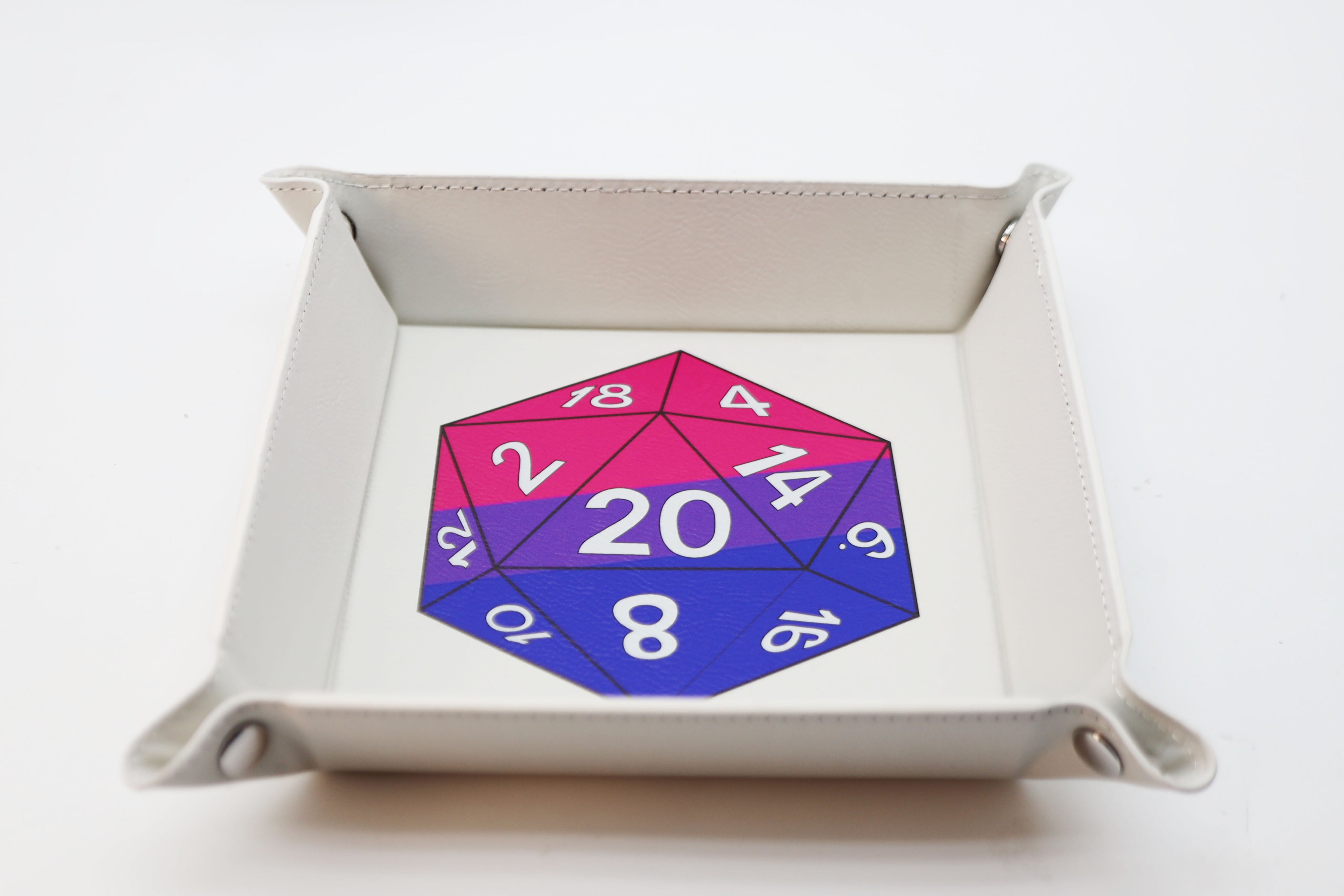 Show your pride with our collapsible dice tray! This dice tray is made with durable leatherette and strong metal snap buttons. It's perfect for the traveling player or Dungeon Master. The tray stays flat and snaps together when you're ready to play!