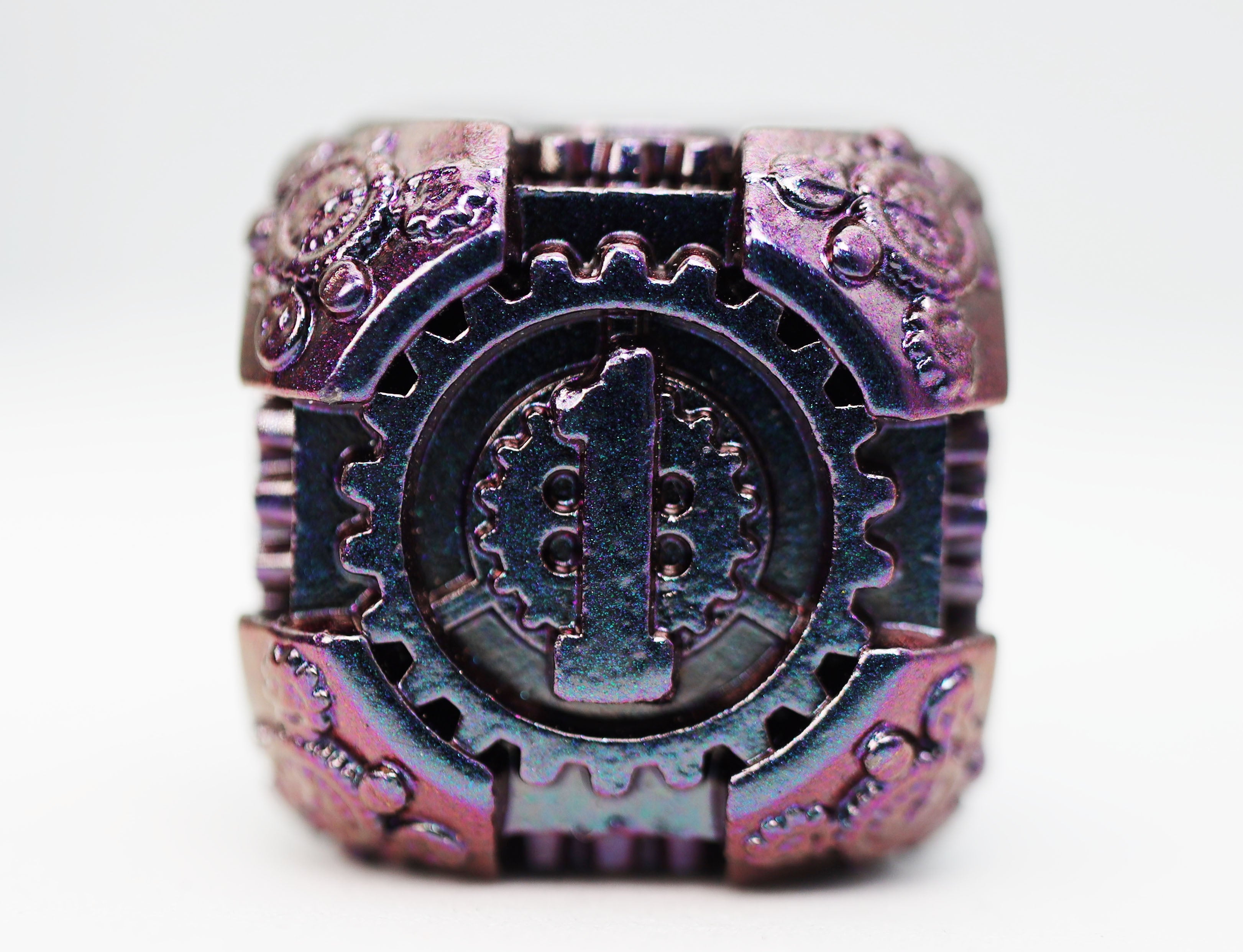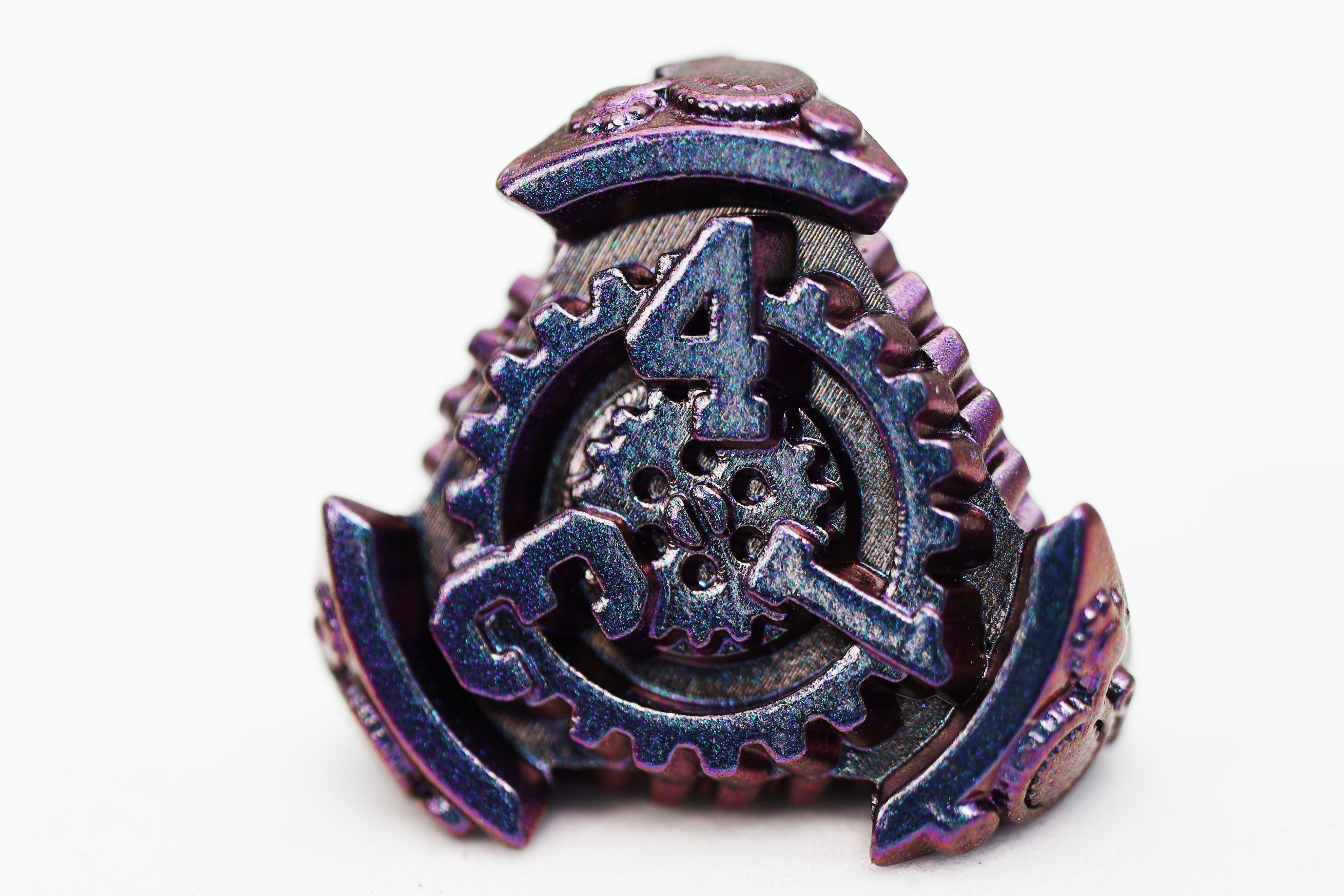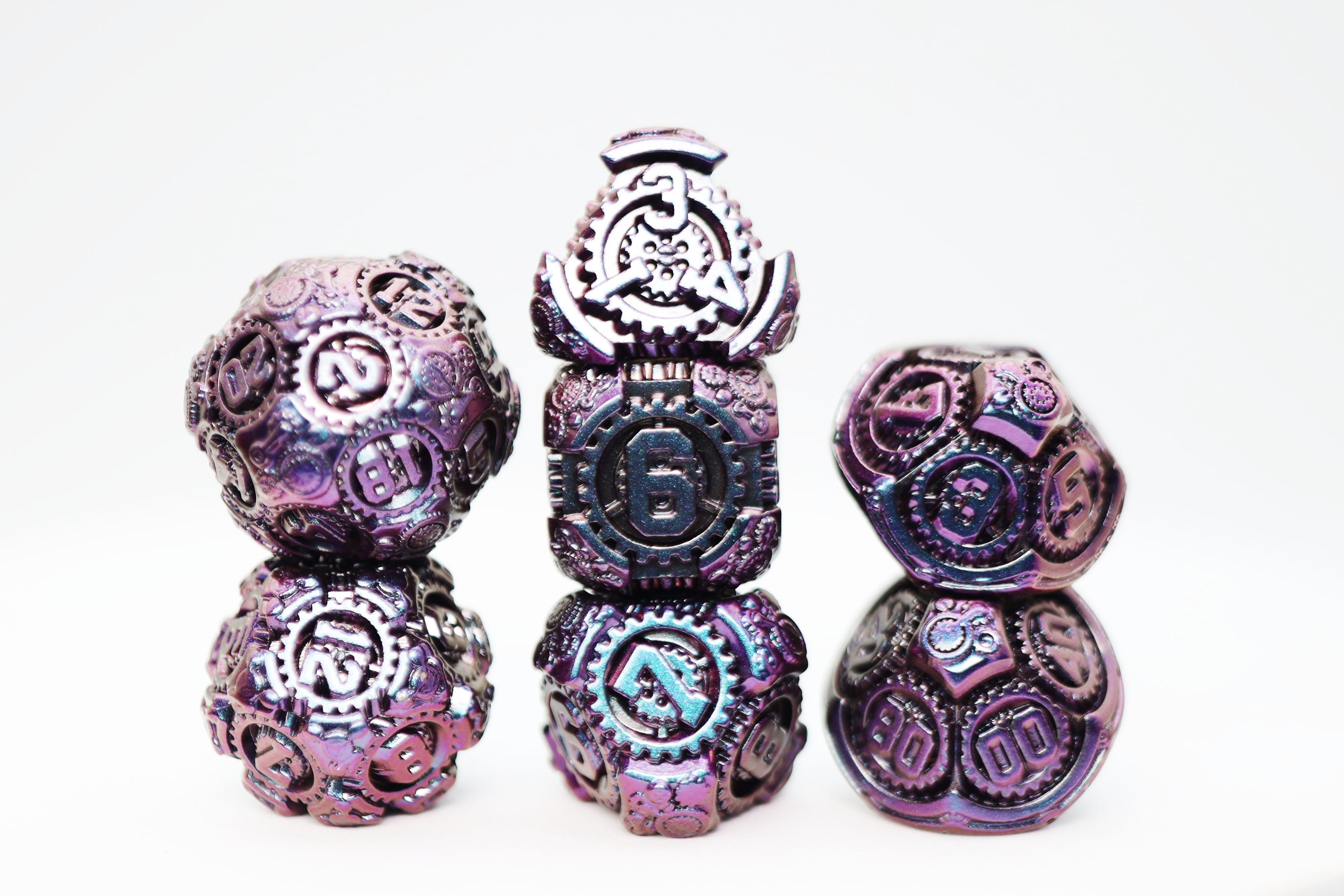 This Foam Brain Games Metal Dice Set with gear shaped details on the die faces is perfect for your next Steampunk adventure!