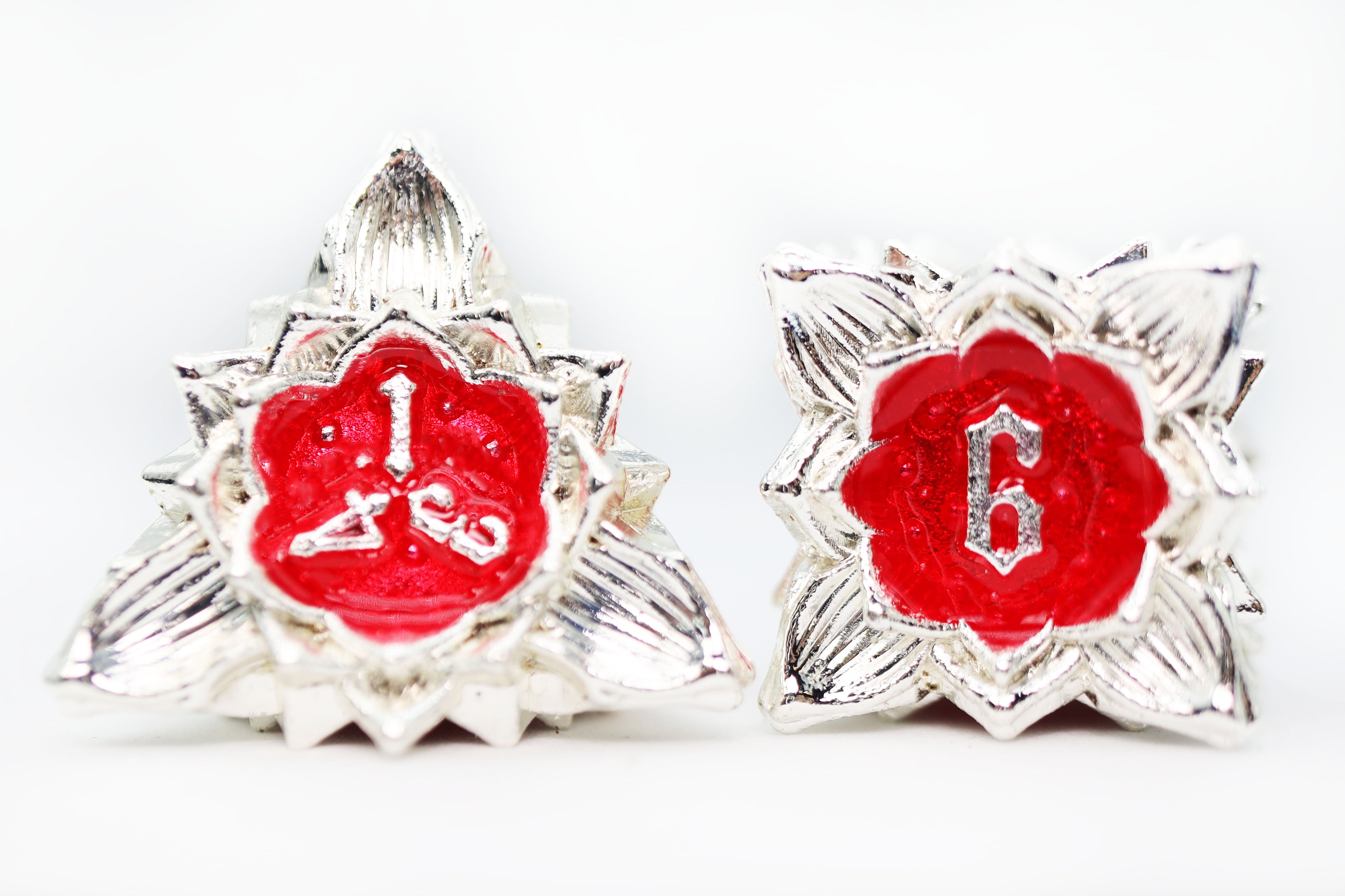 Floral Starburst: Icy Amaryllis - Metal RPG Dice Set