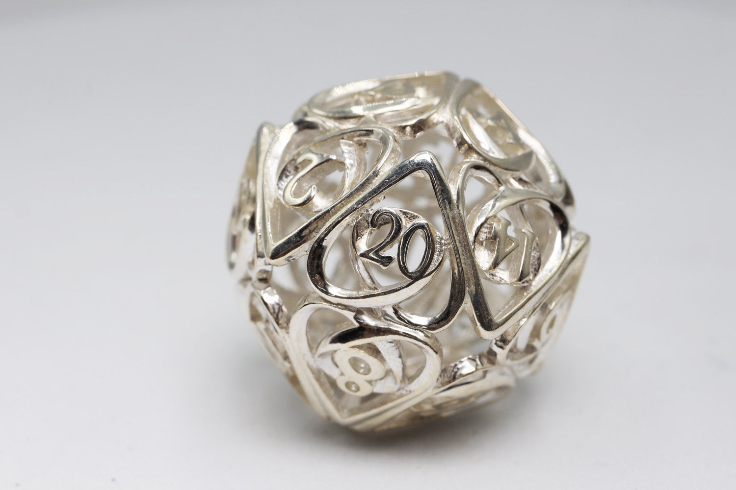 Our Premium Silver Hollow Hearts sets are solid Sterling Silver. Each set is beautiful and feels solid and substantial despite being hollow and light weight. They are sure to be a treasured addition to your dice collection!