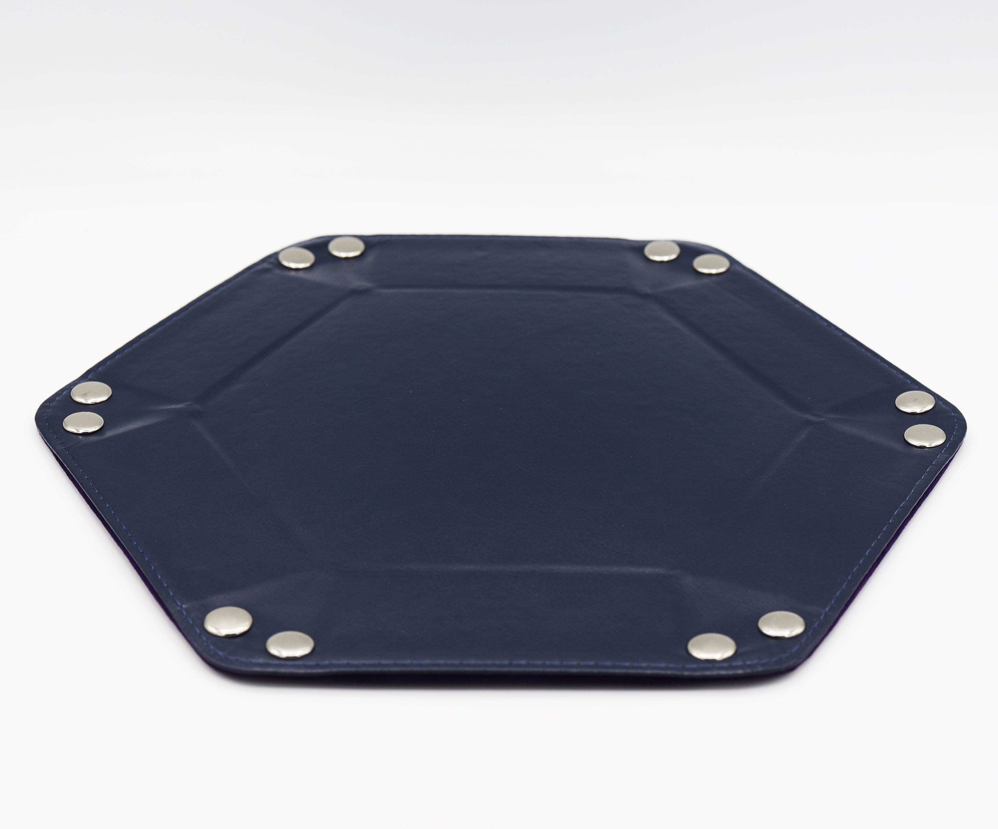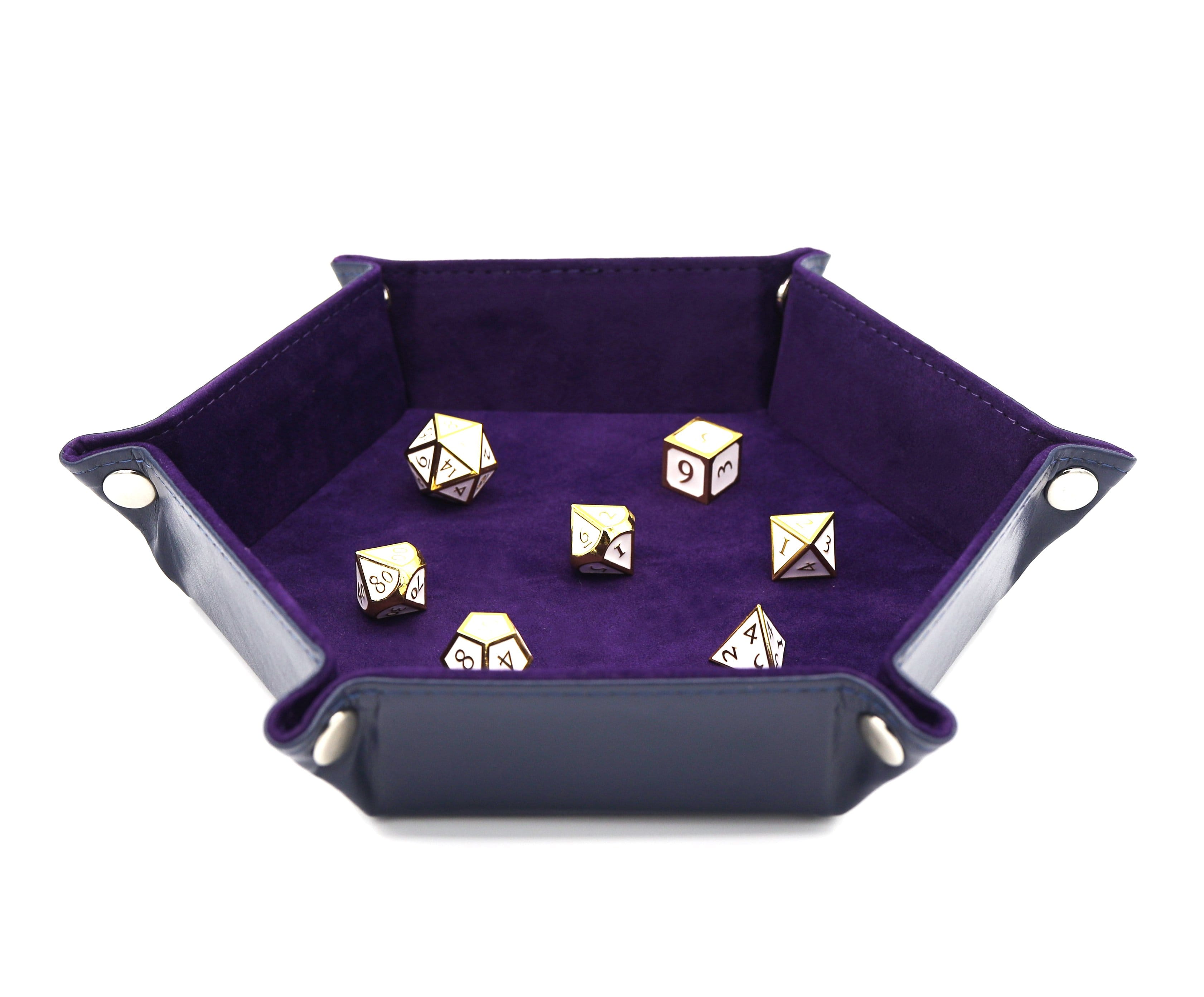 Leatherette & Velvet Dice Tray (Navy w/ Purple Hex)