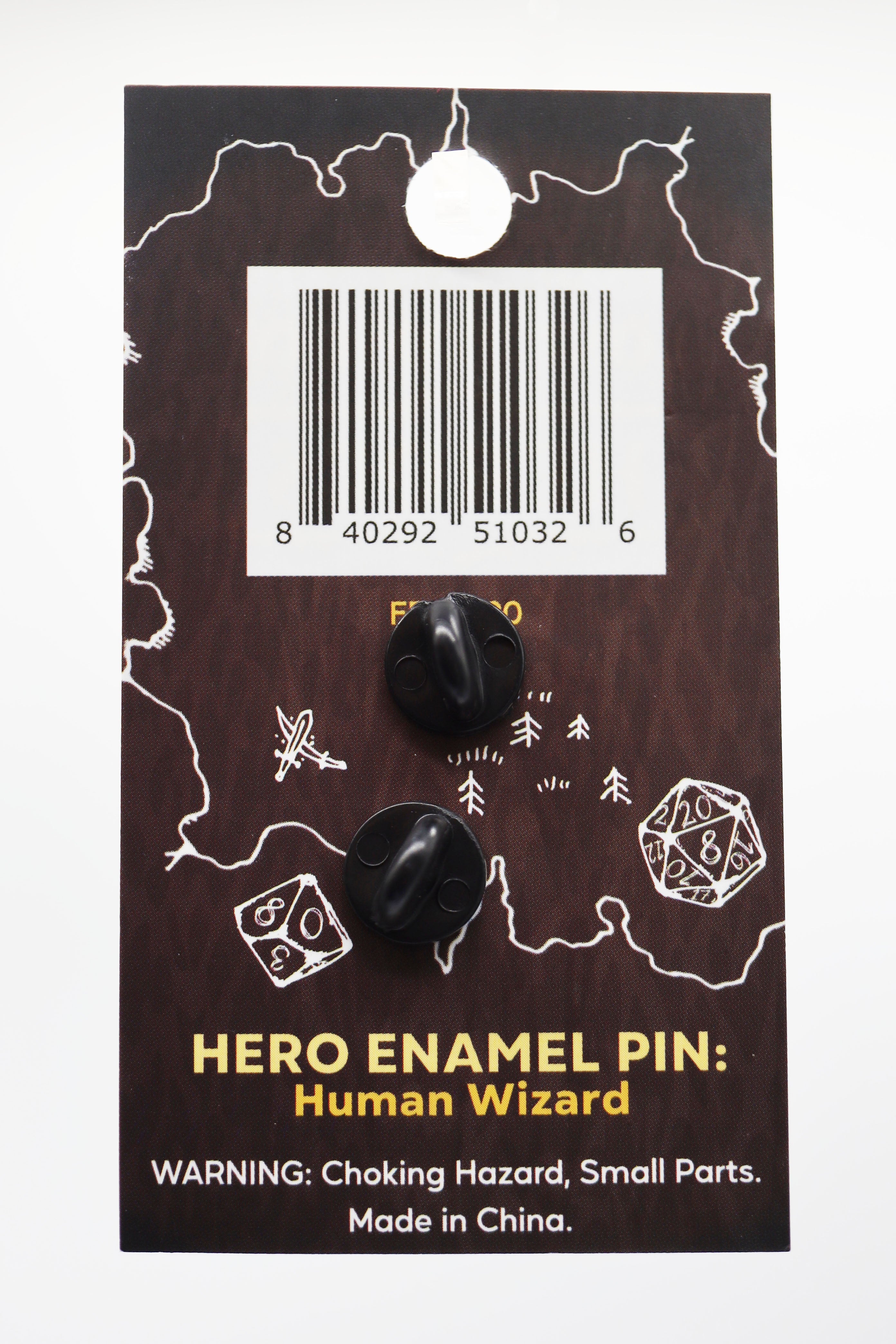 These pins are our own unique design and are made of durable metal and enamel. Wear on your clothes, bag, or lanyard as a pin, and then fold it into a miniature when you're ready to play