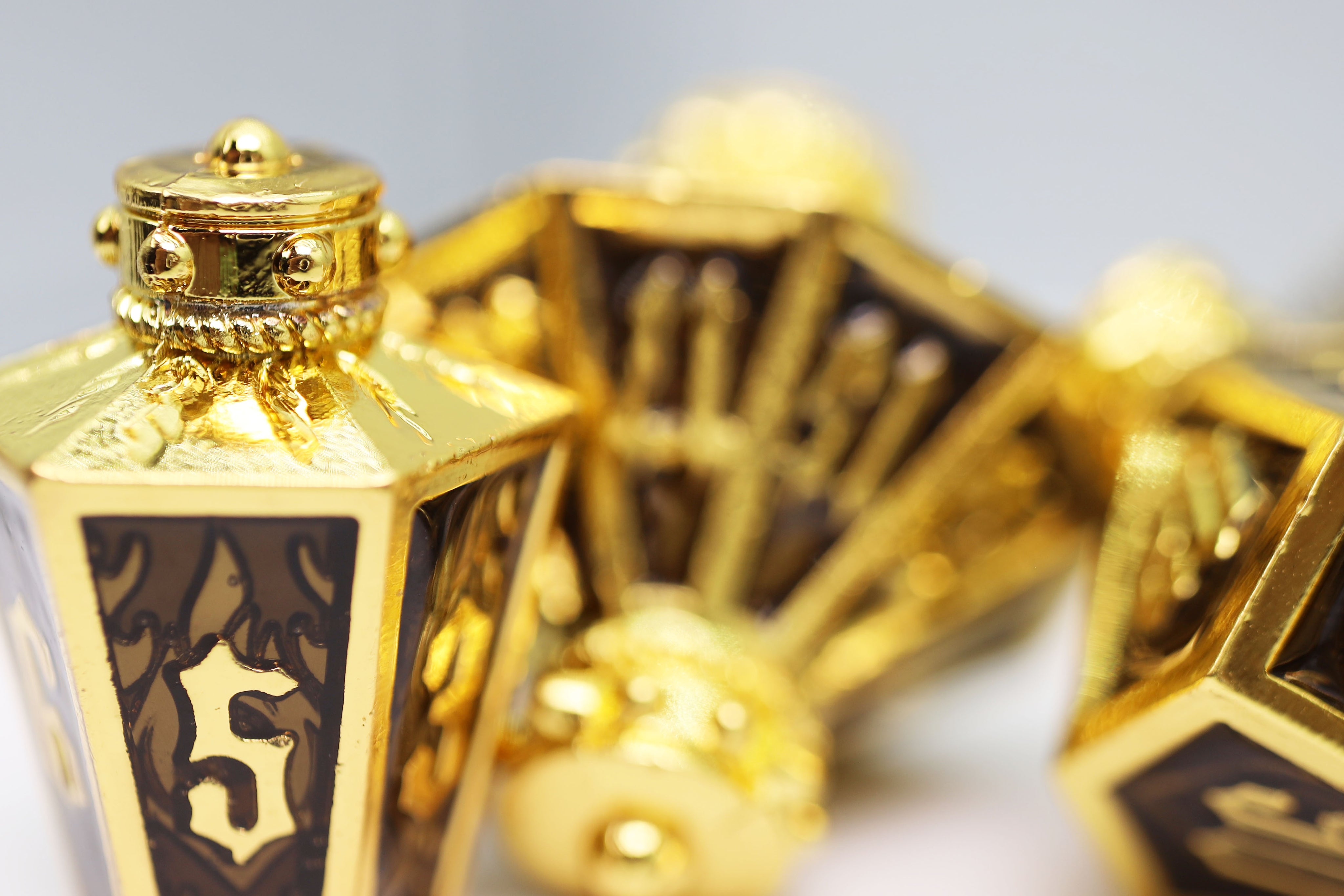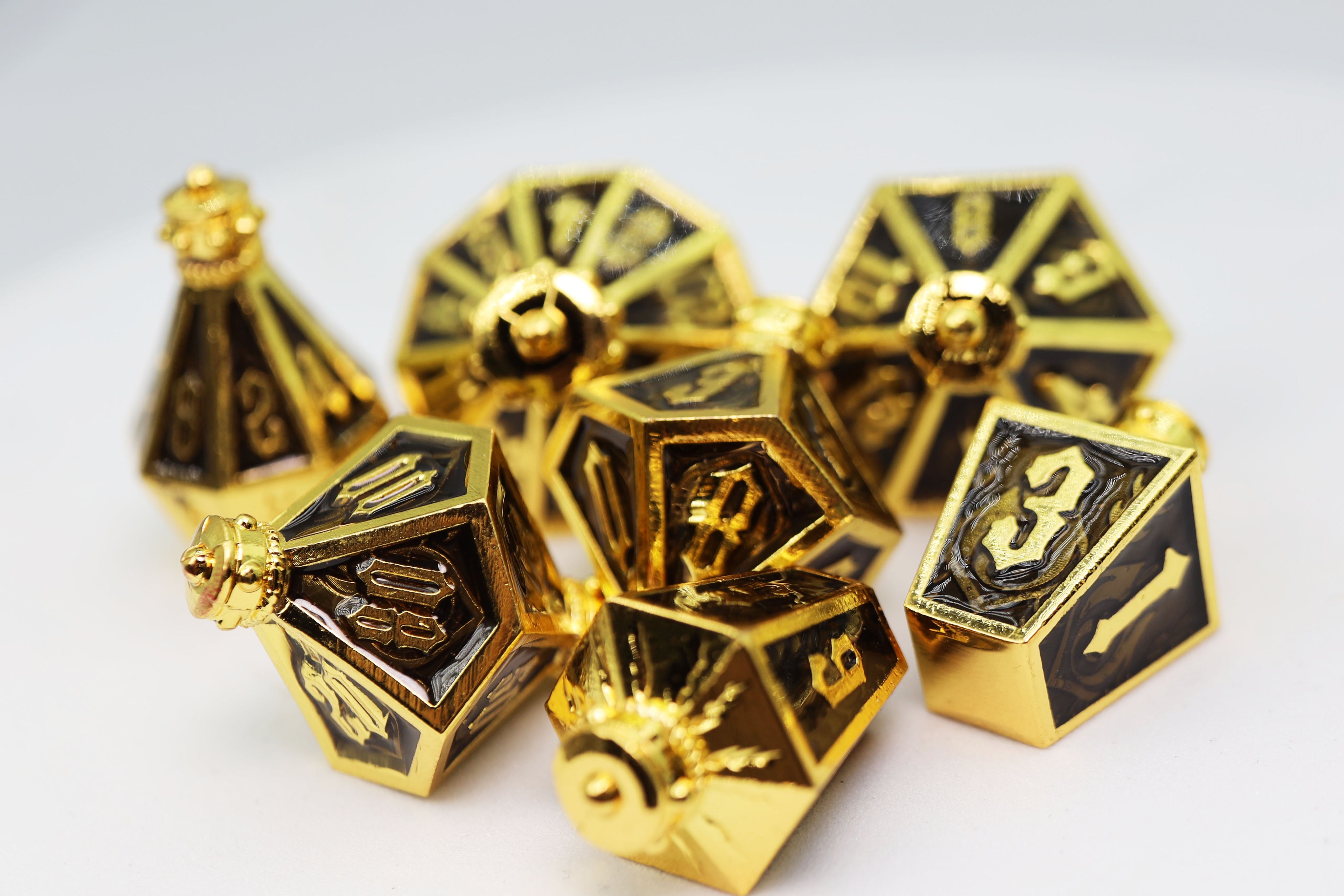 Moonlit Lantern: Golden Earthen Flame - Metal RPG Dice Set