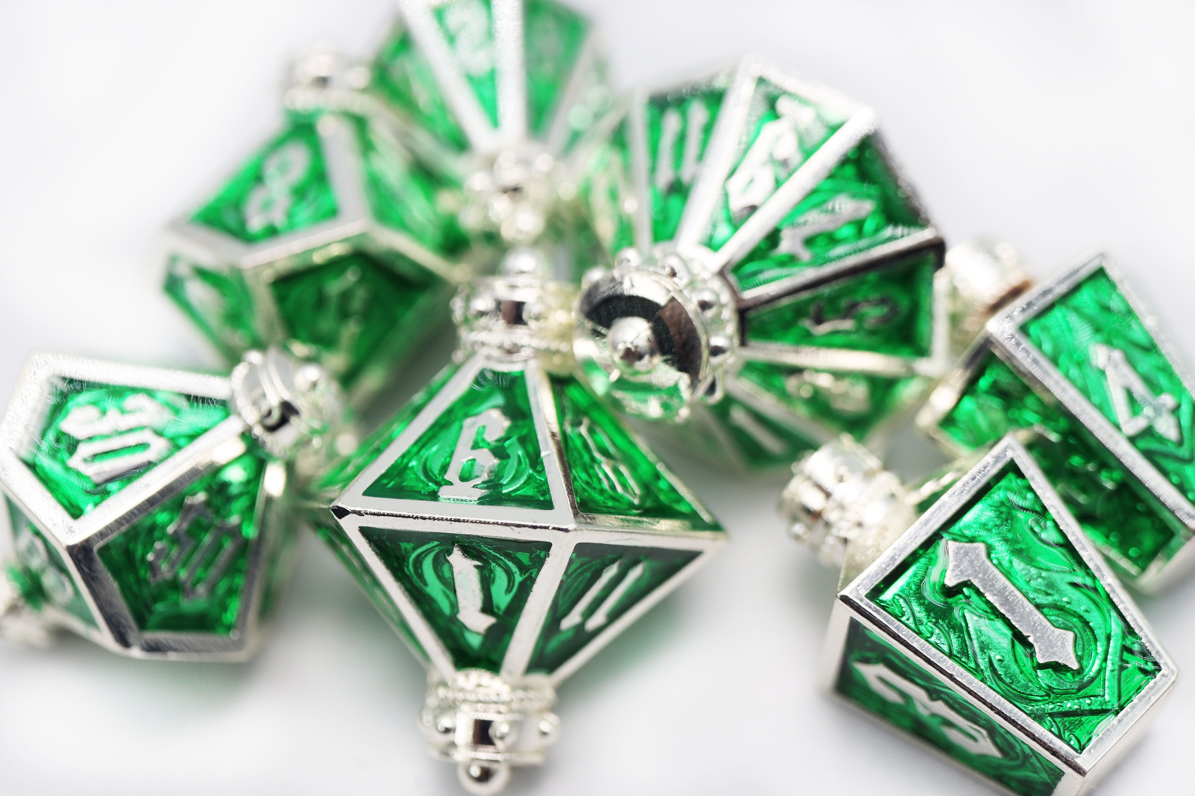 Moonlit Lantern: Silvered Acidfire - Metal RPG Dice Set