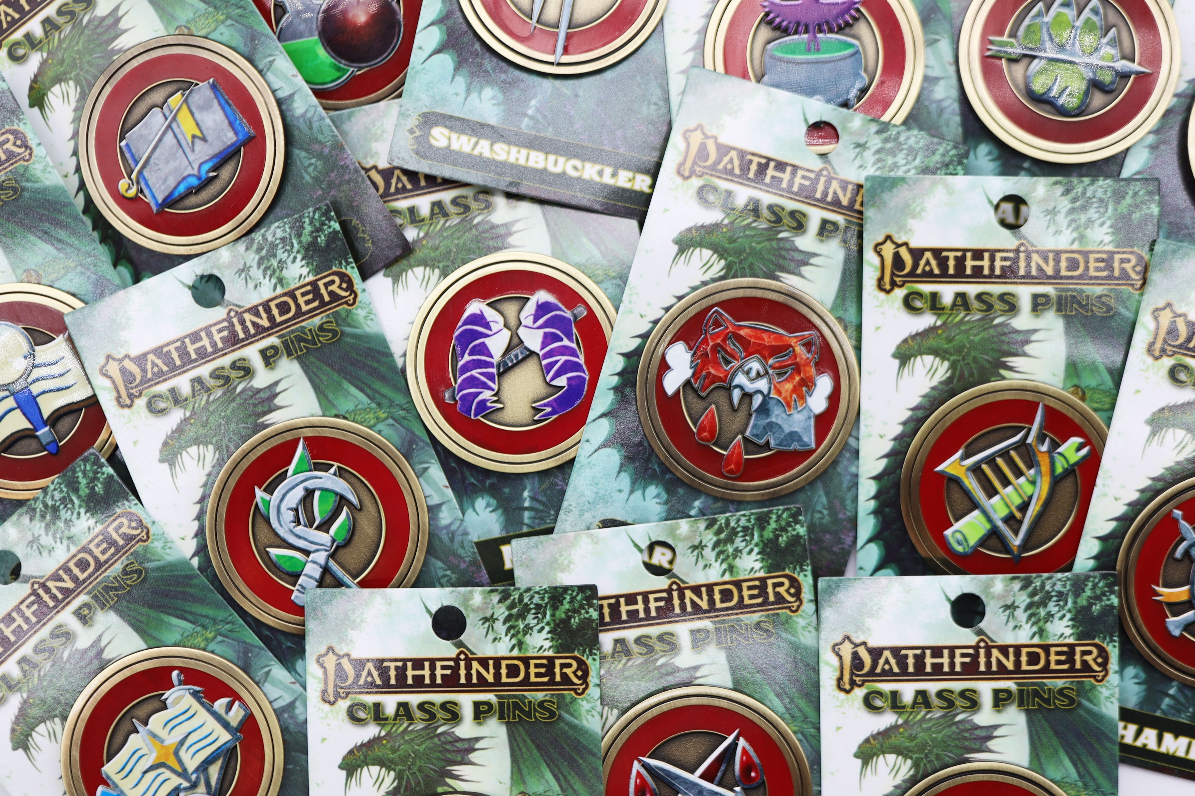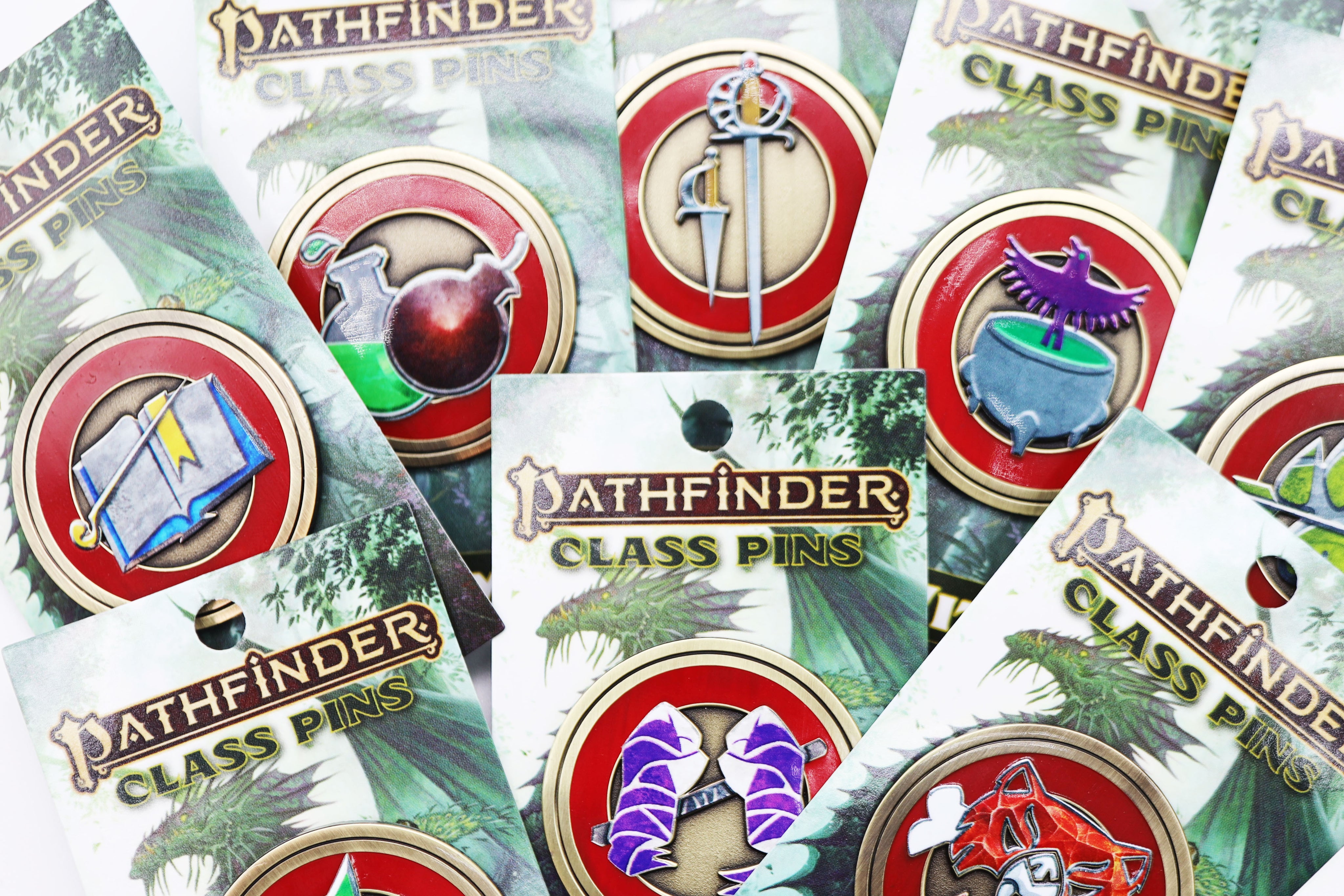 Introducing our sleek and stylish Pathfinder Class Pins! These pins feature 16 different class icons from the hit game series Pathfinder!