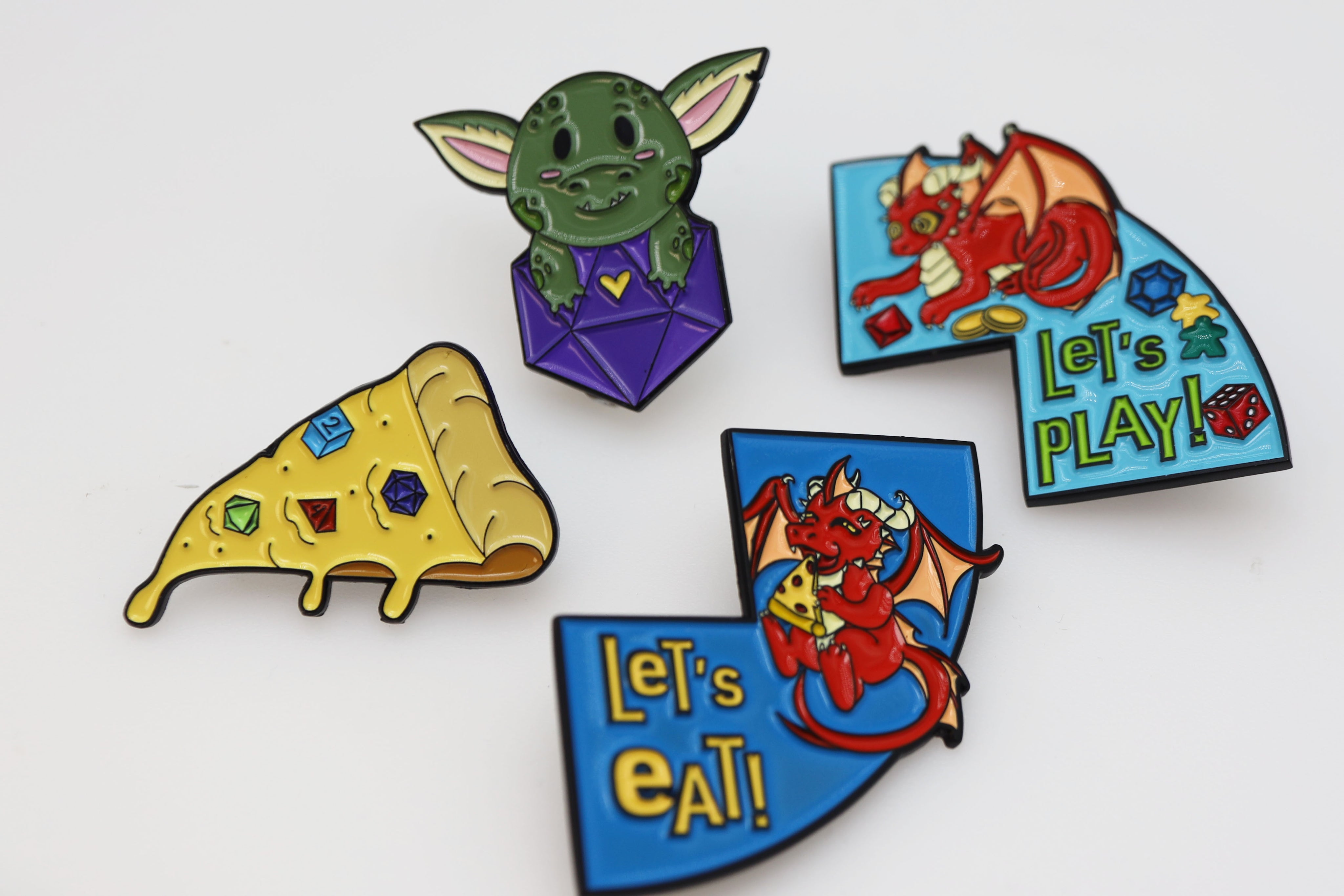 The Pin Bazaar: Gen Con 2024 Starter Set contains 4 exclusive 1.5" enamel pins! Even if you missed us at Gen Con, you can still get your hands on these special pins!
