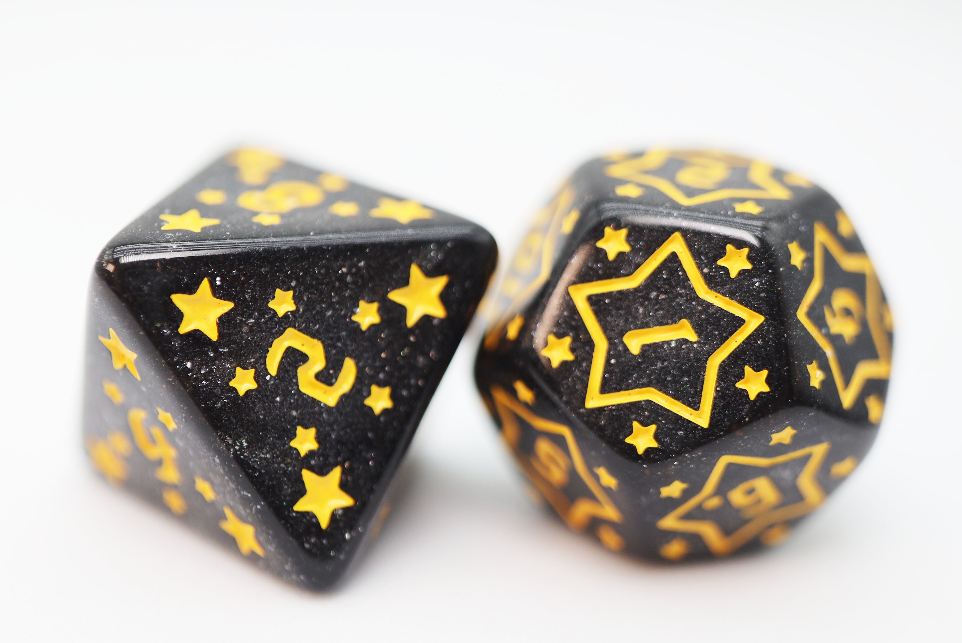 This dice set is out of this world! Flying across the sky are our beautiful Shooting Stars RPG dice set collection. Each set is named after an element that makes up different objects in space!