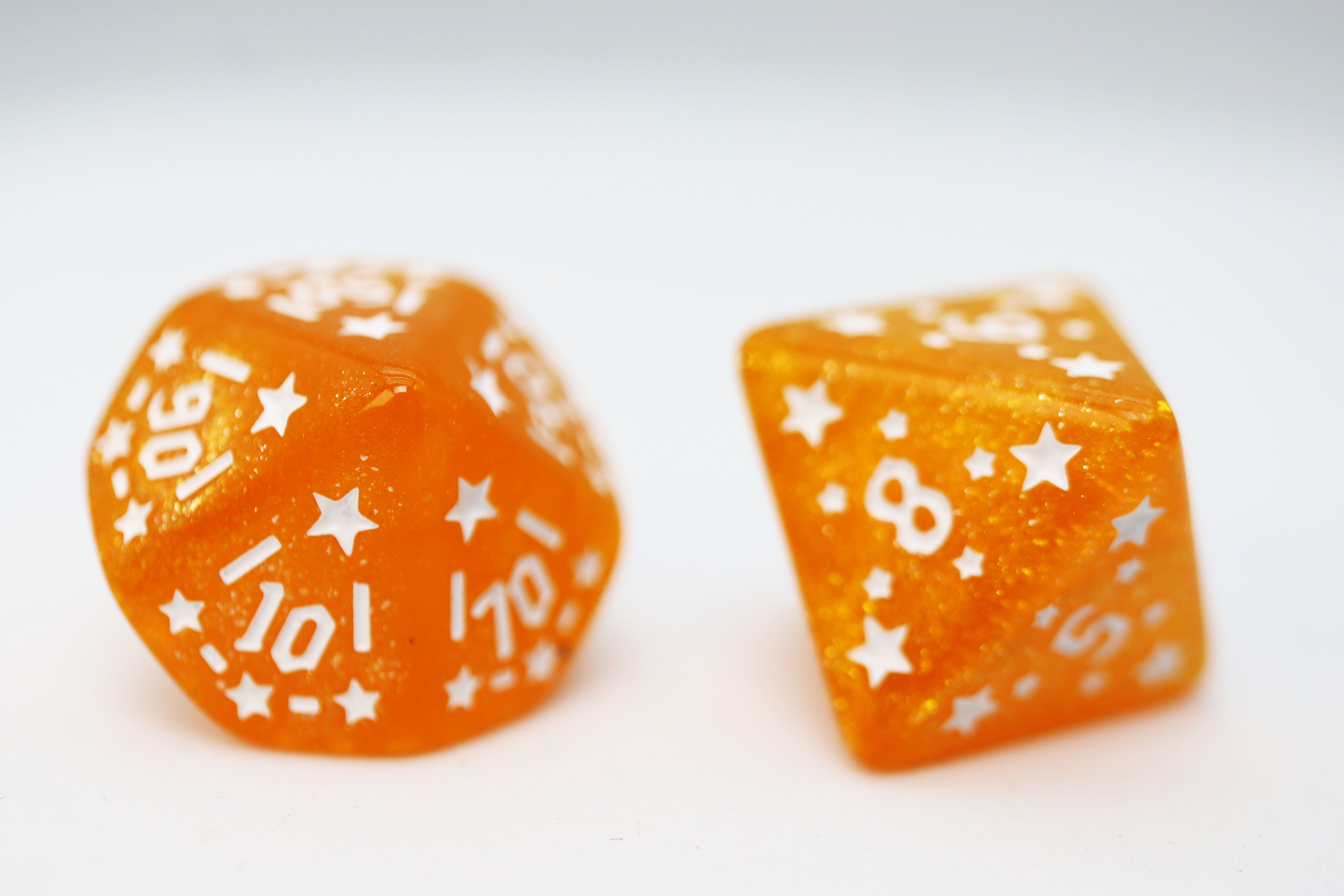 This dice set is out of this world! Flying across the sky are our beautiful Shooting Stars RPG dice set collection. Each set is named after an element that makes up different objects in space!