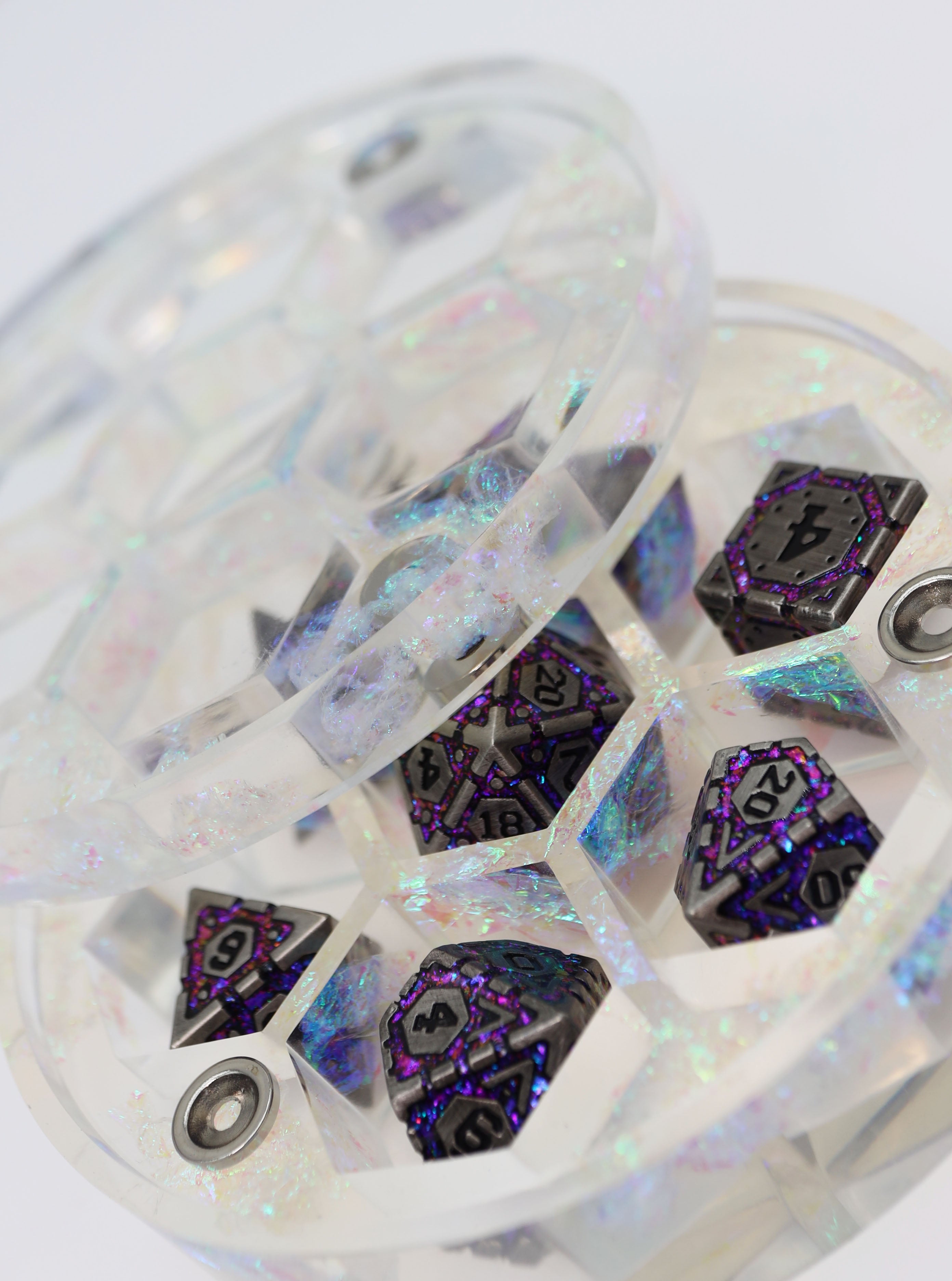 Due to our manufacturer’s process, our plastic rpg dice sets may exhibit slight variations in colors and patterns. Though, the main color schemes and style will remain the same - you may receive a set that has more purple than blue, for example.