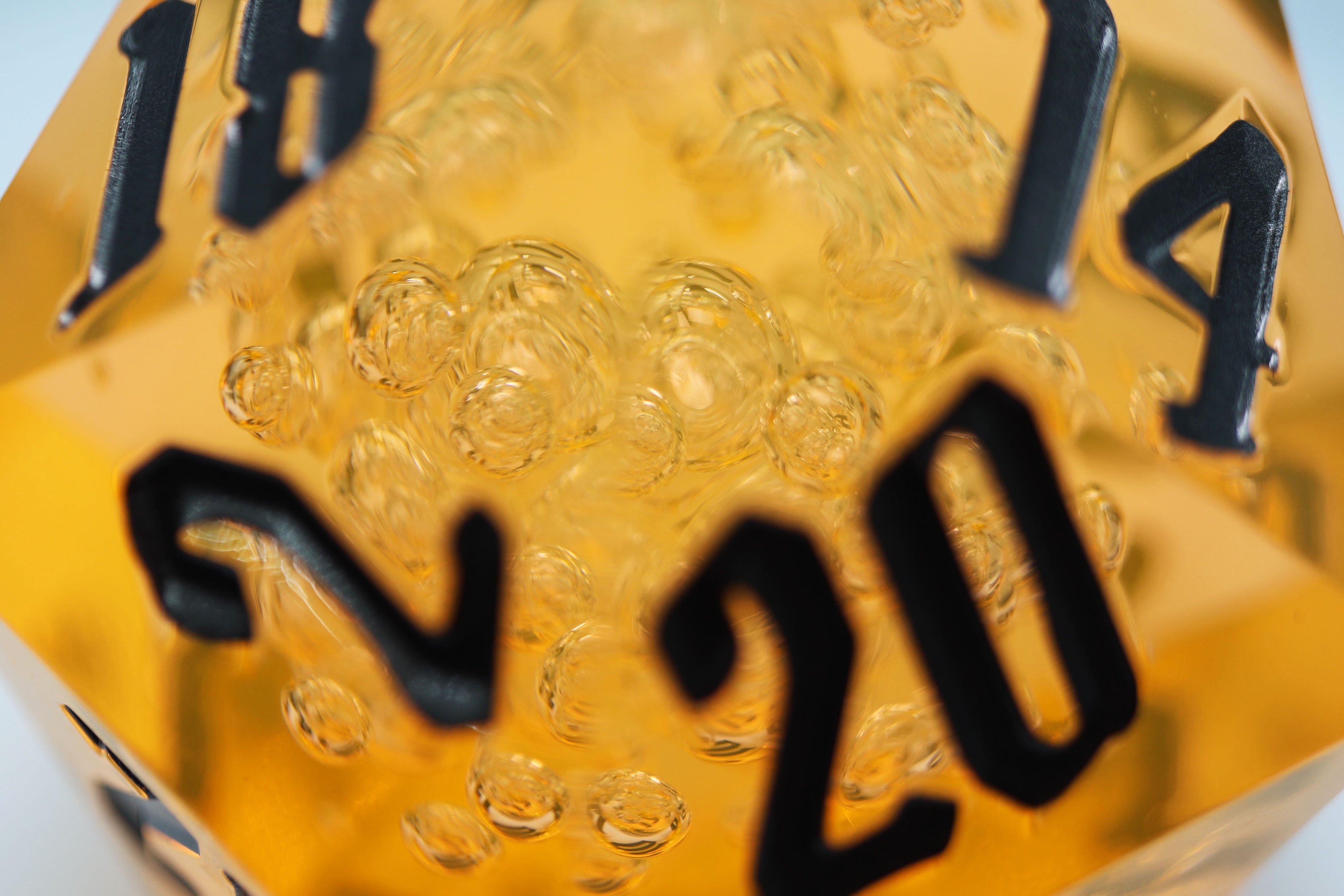 These D20s are the biggest dice we have, and have certainly earned the name Titan! They barely fit in your palm, but are lightweight considering their size. These dice have sharp edges and are polished to a shine.