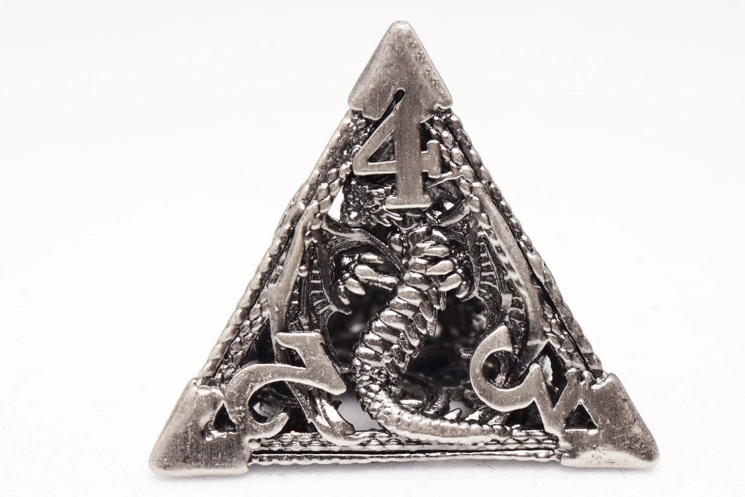 Bound Dragon: Silver - Hollow Metal RPG Dice Set