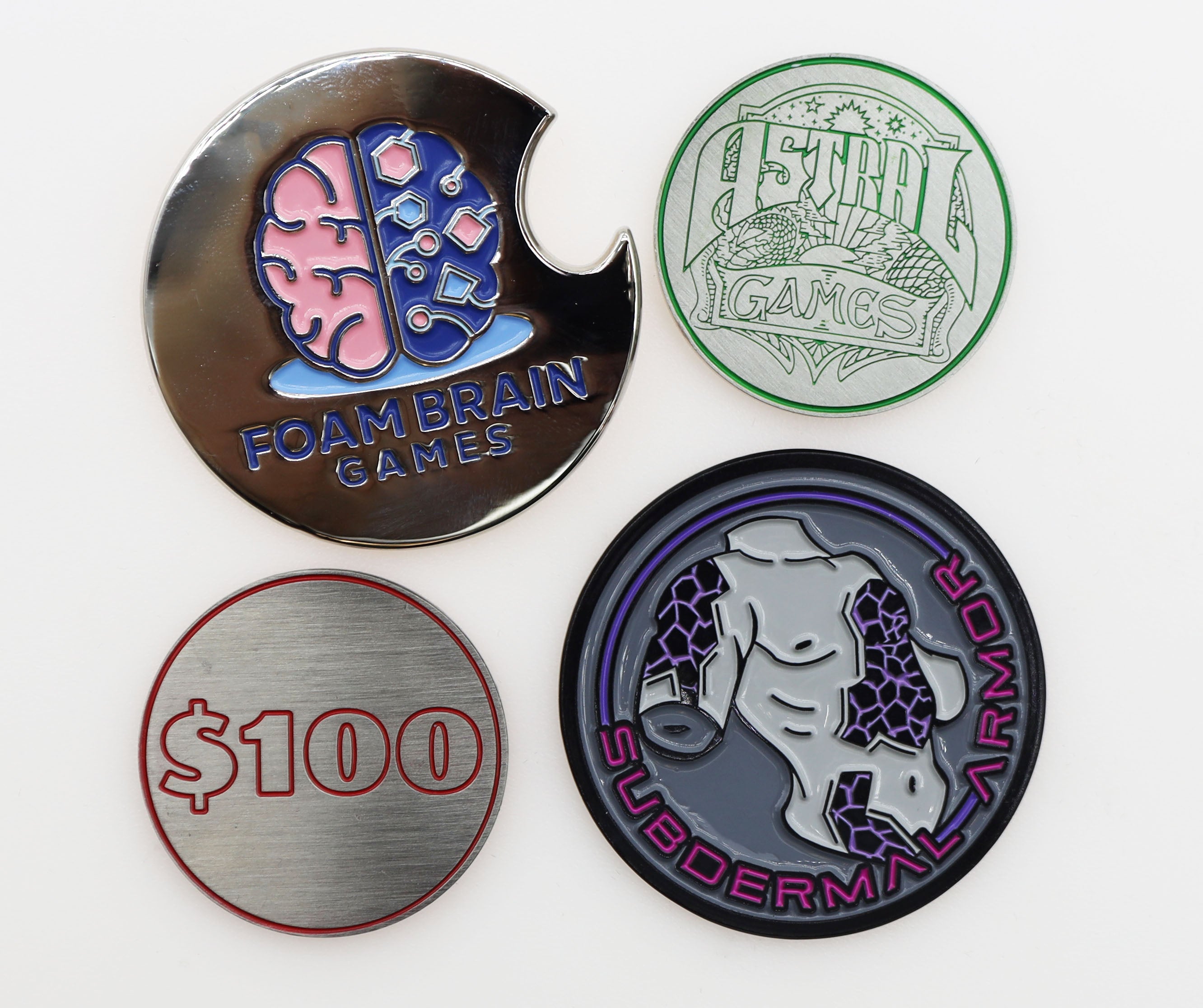 Durability with Character: While not as scratch-resistant as die-cast coins, enameled coins are still durable and built to withstand regular handling. Their colorful finish also gives them a more “authentic” or handmade feel, perfect for designs with a vintage or artistic aesthetic.