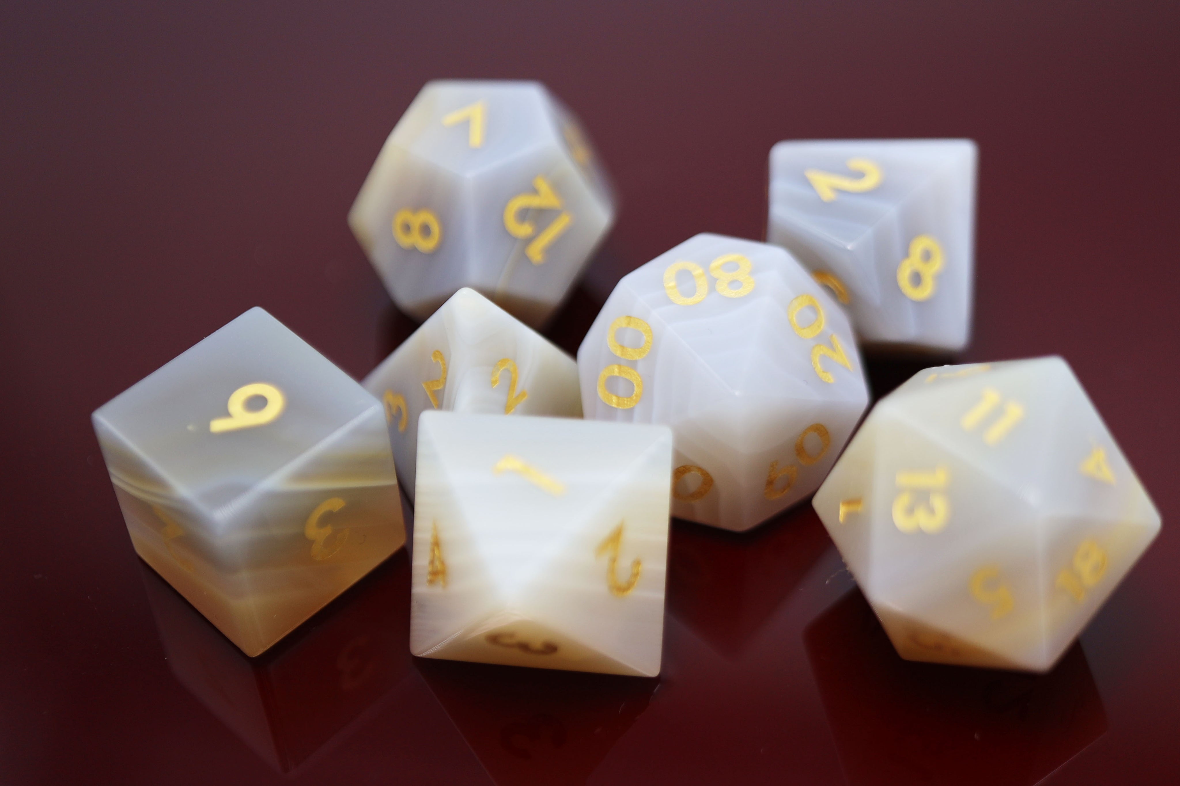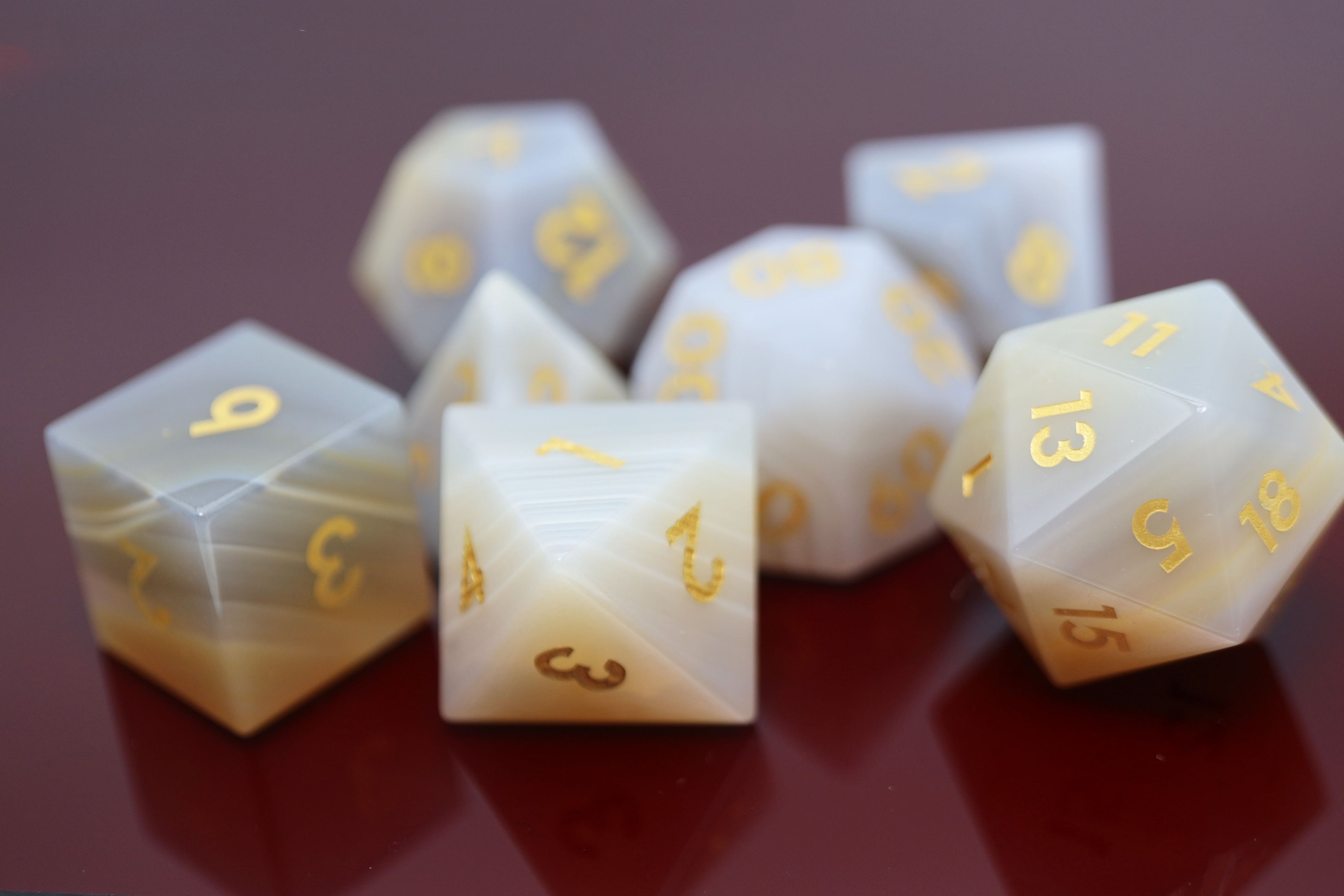 These unique stone dice will be the gem of your collection! Each complete RPG set comes carefully packed in a leatherette storage case, ready to accompany you on your search for more precious loot. Our beautiful Foam Brain Games Stone Dice are sure to be the envy of your adventuring party!