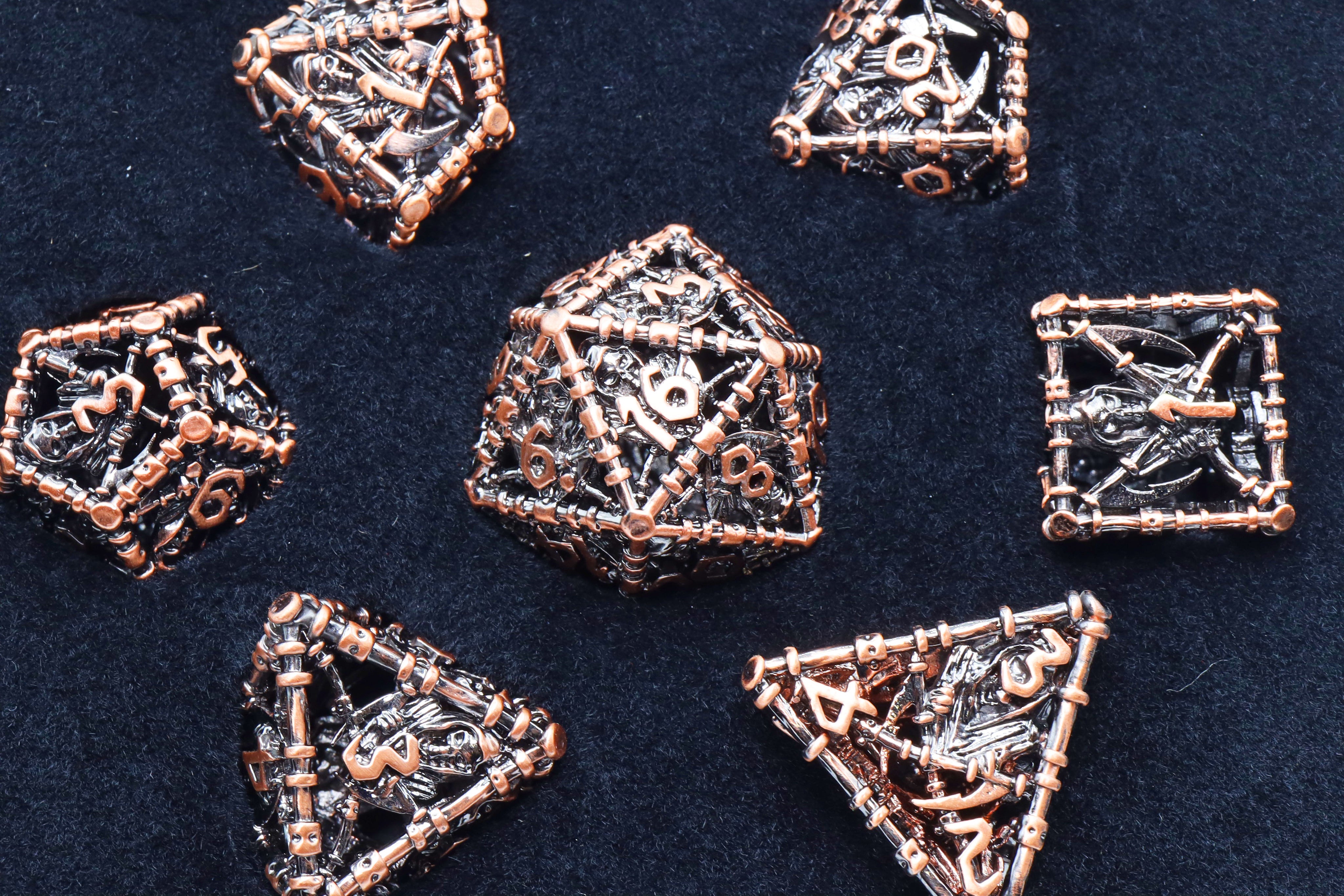 This Foam Brain Games Hollow Metal Dice Set with a unique Grim Reaper detail on the die faces is sure to be a scream at your next gaming session!