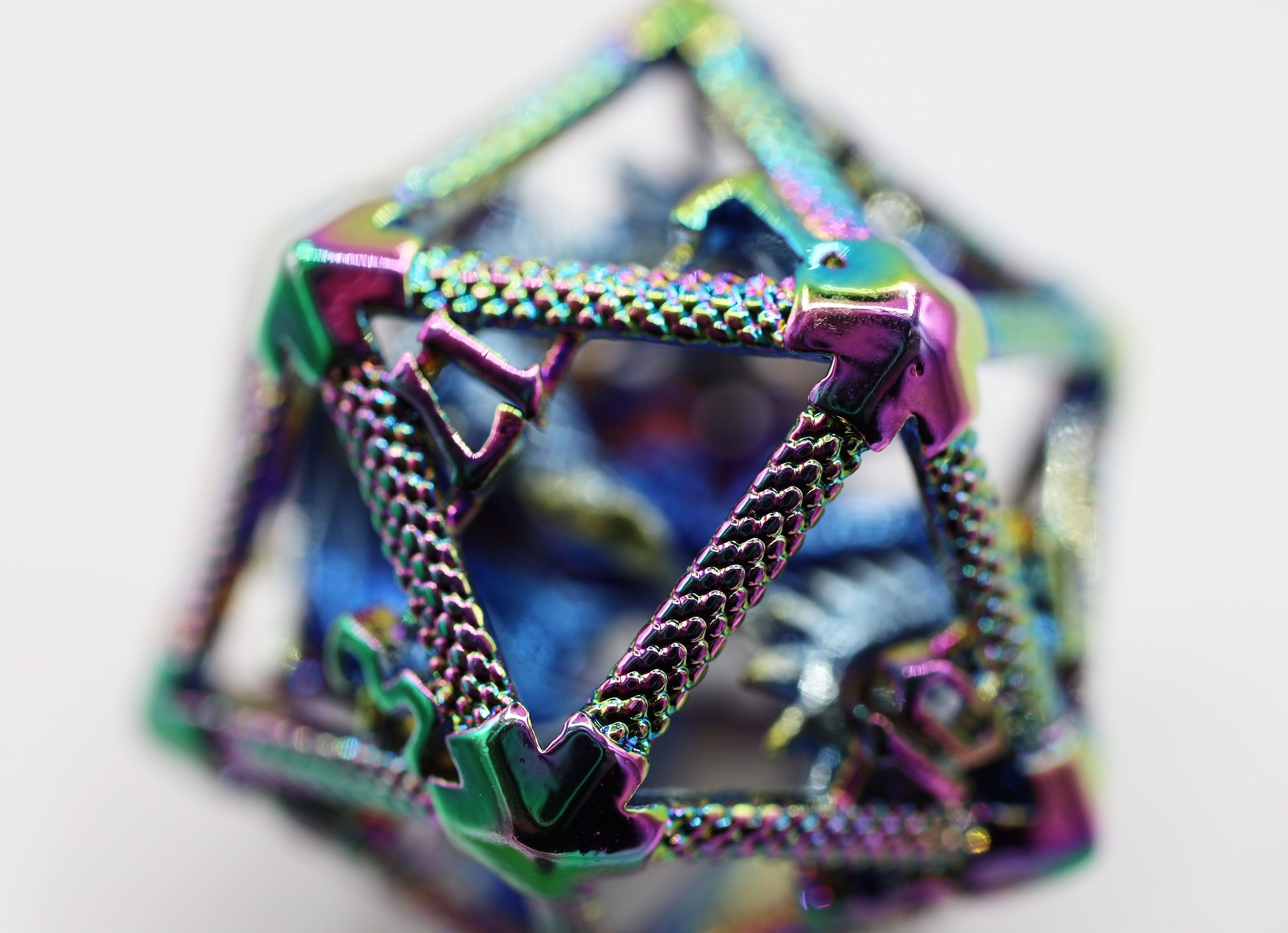 This die comes in several metal colors and will be an amazing addition to your dice bag.
