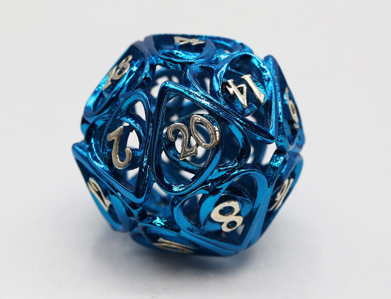 Hollow Heart sets are wax-cast in brass and then electroplated in a variety of colors. Each set is beautiful and feels solid and substantial despite being hollow and light weight. They are sure to be a treasured addition to your dice collection!