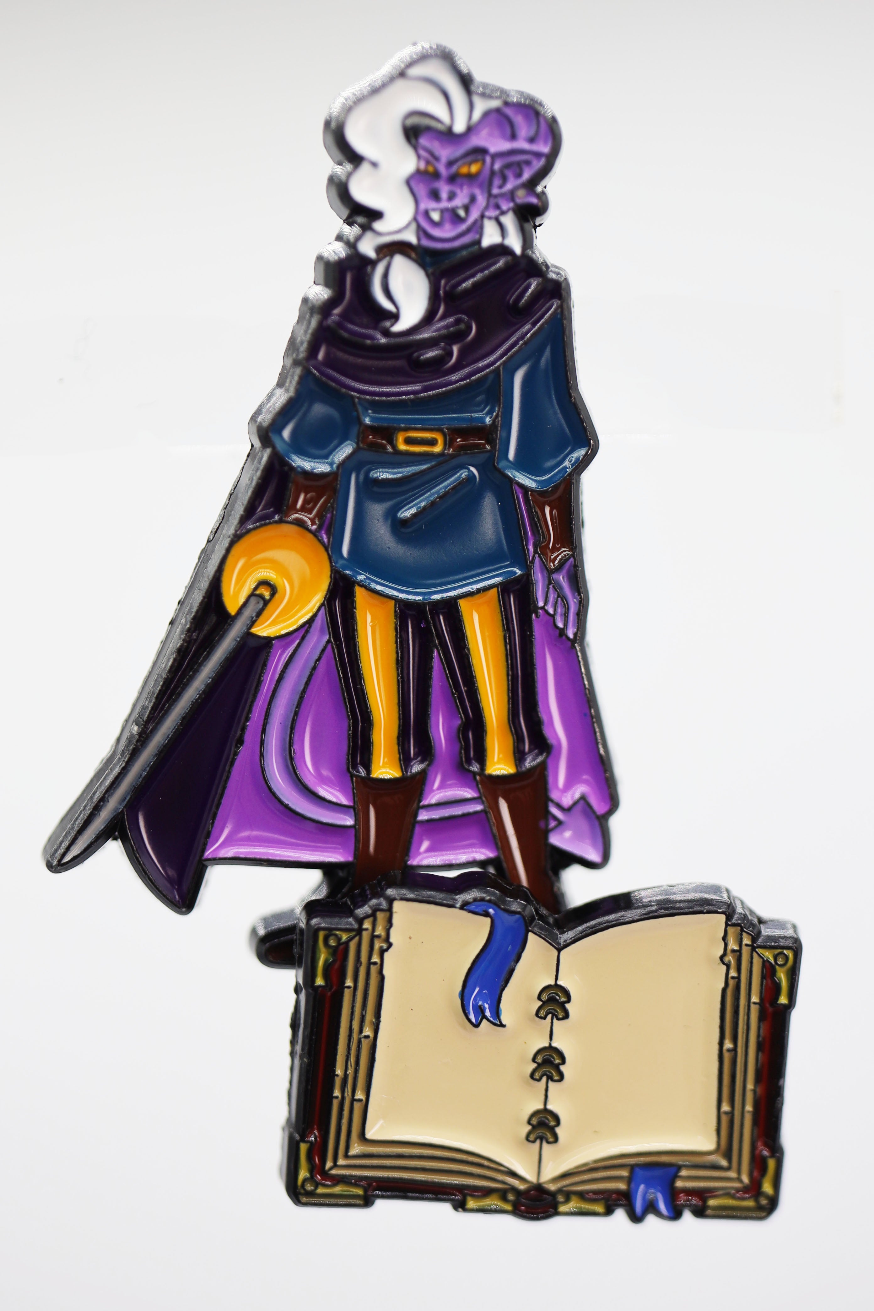 These pins are our own unique design and are made of durable metal and enamel. Wear on your clothes, bag, or lanyard as a pin, and then fold it into a miniature when you're ready to play