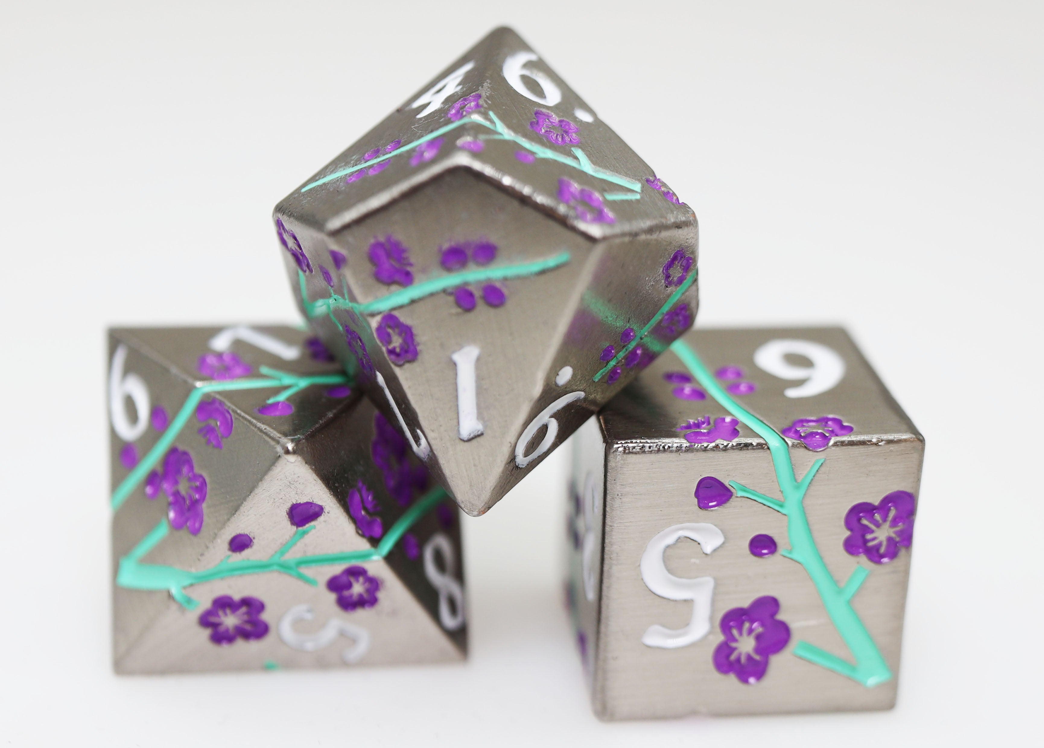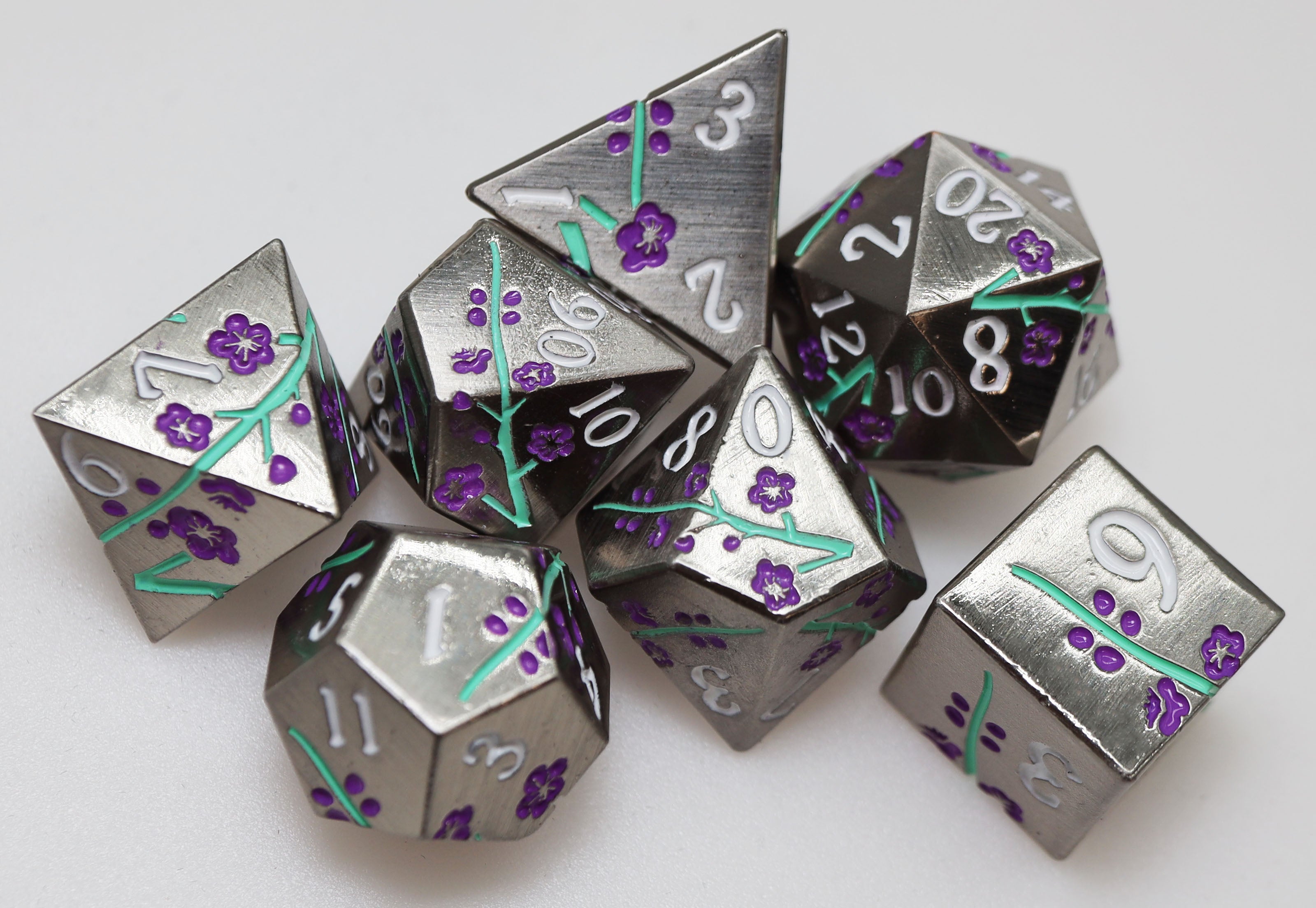 Metallic Bouquet: Silvered Jackmanii - Metal RPG Dice Set