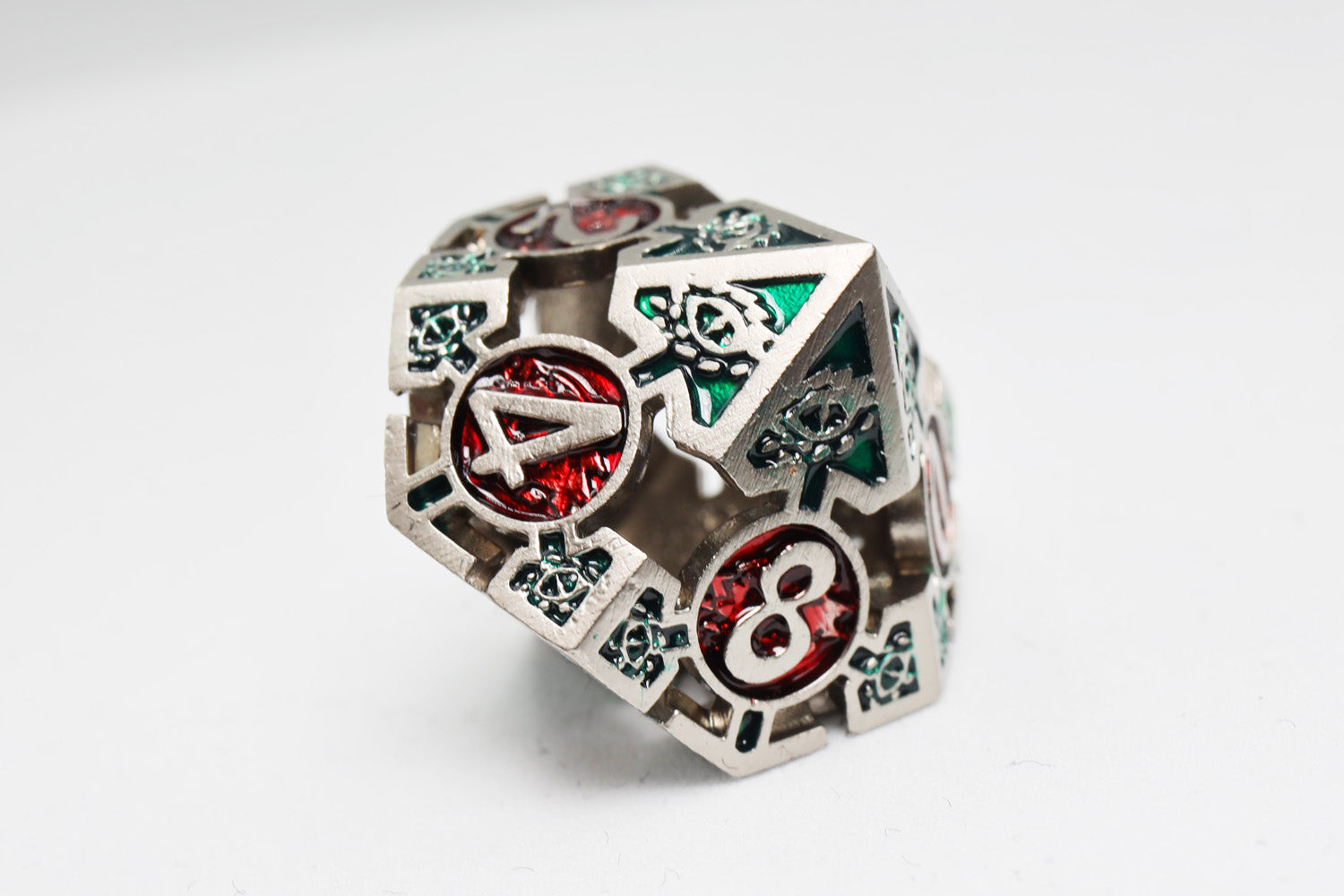 This Foam Brain Games Hollow Metal Dice Set with eye details on the die faces is sure to draw an envious gaze from your fellow adventurers.