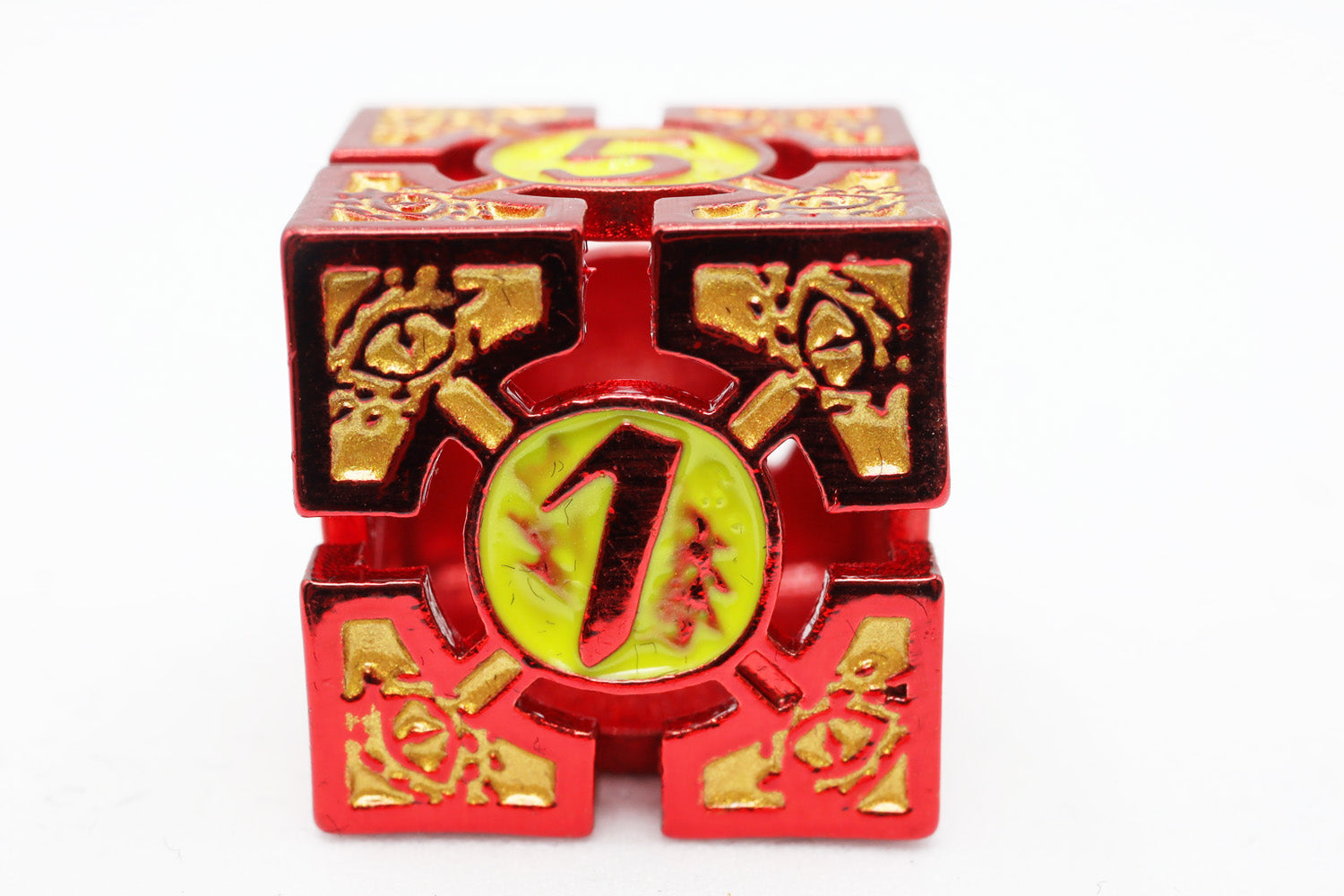 This Foam Brain Games Hollow Metal Dice Set with eye details on the die faces is sure to draw an envious gaze from your fellow adventurers.