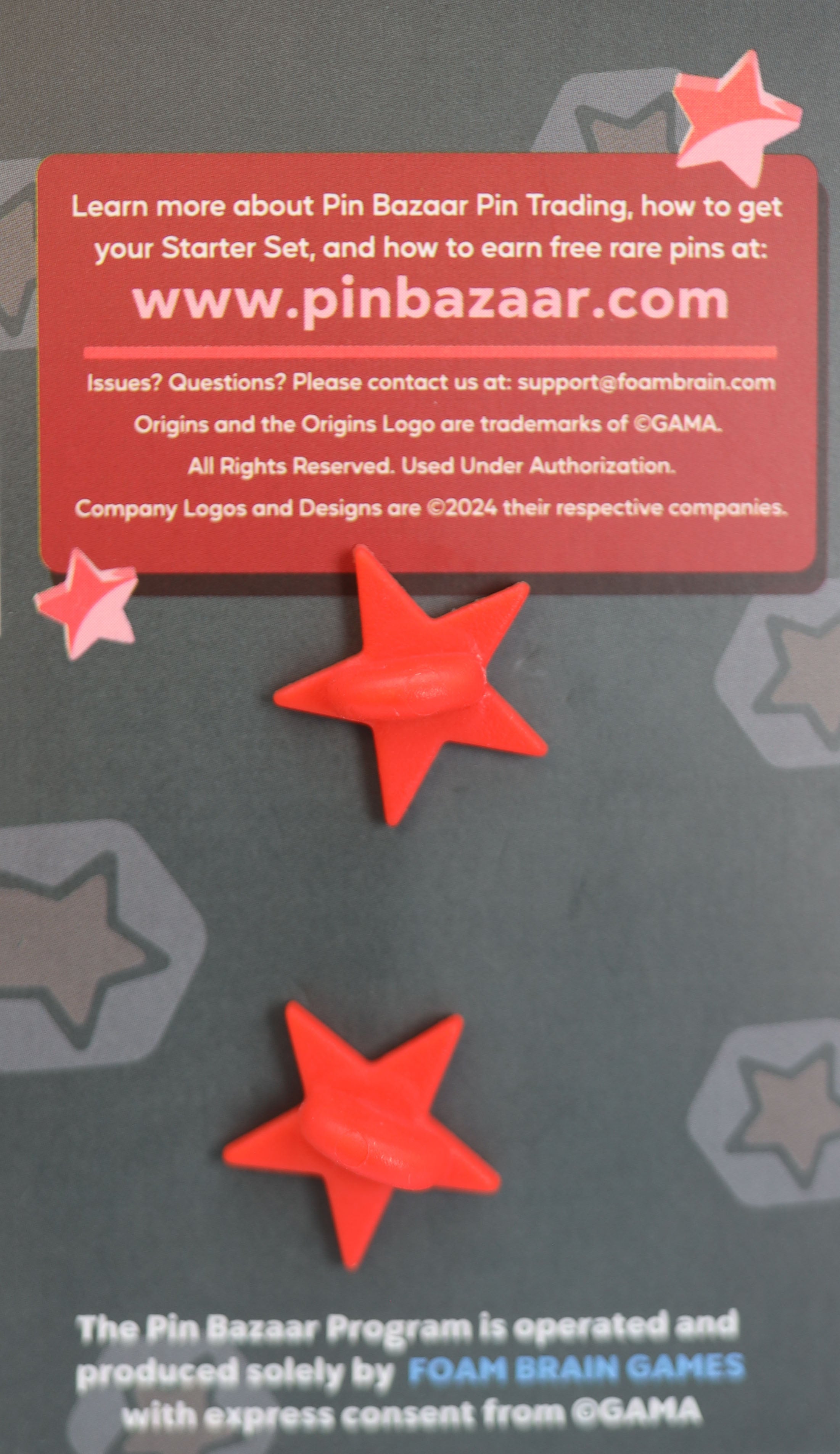Foam Brain's Pin for Pin Bazaar: Origins 2024. Even if you missed us at Origins, you can still get your hands on this special pin! The dice glow in the dark!