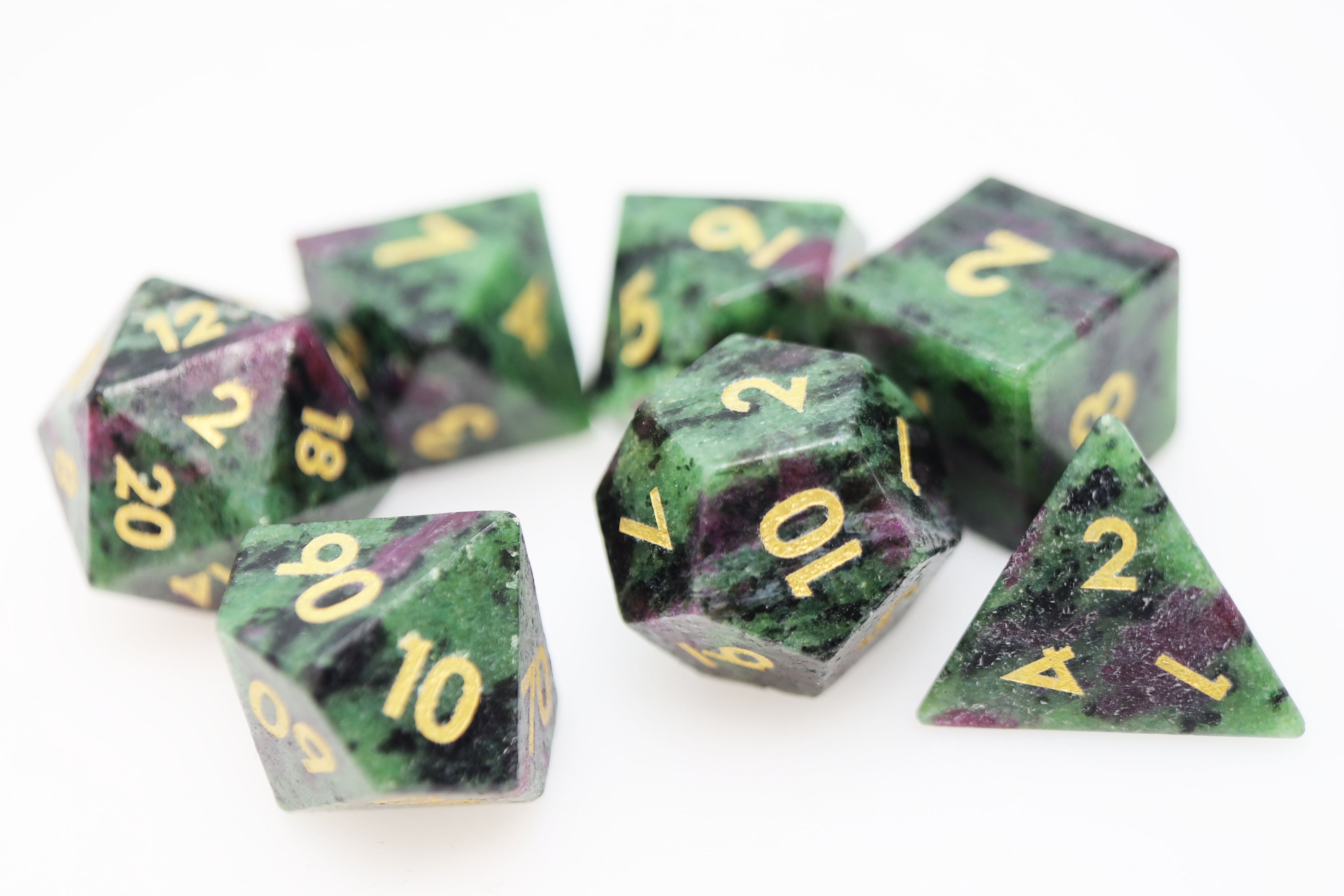 Ruby Zoisite - Engraved with Gold Stone RPG Dice Set