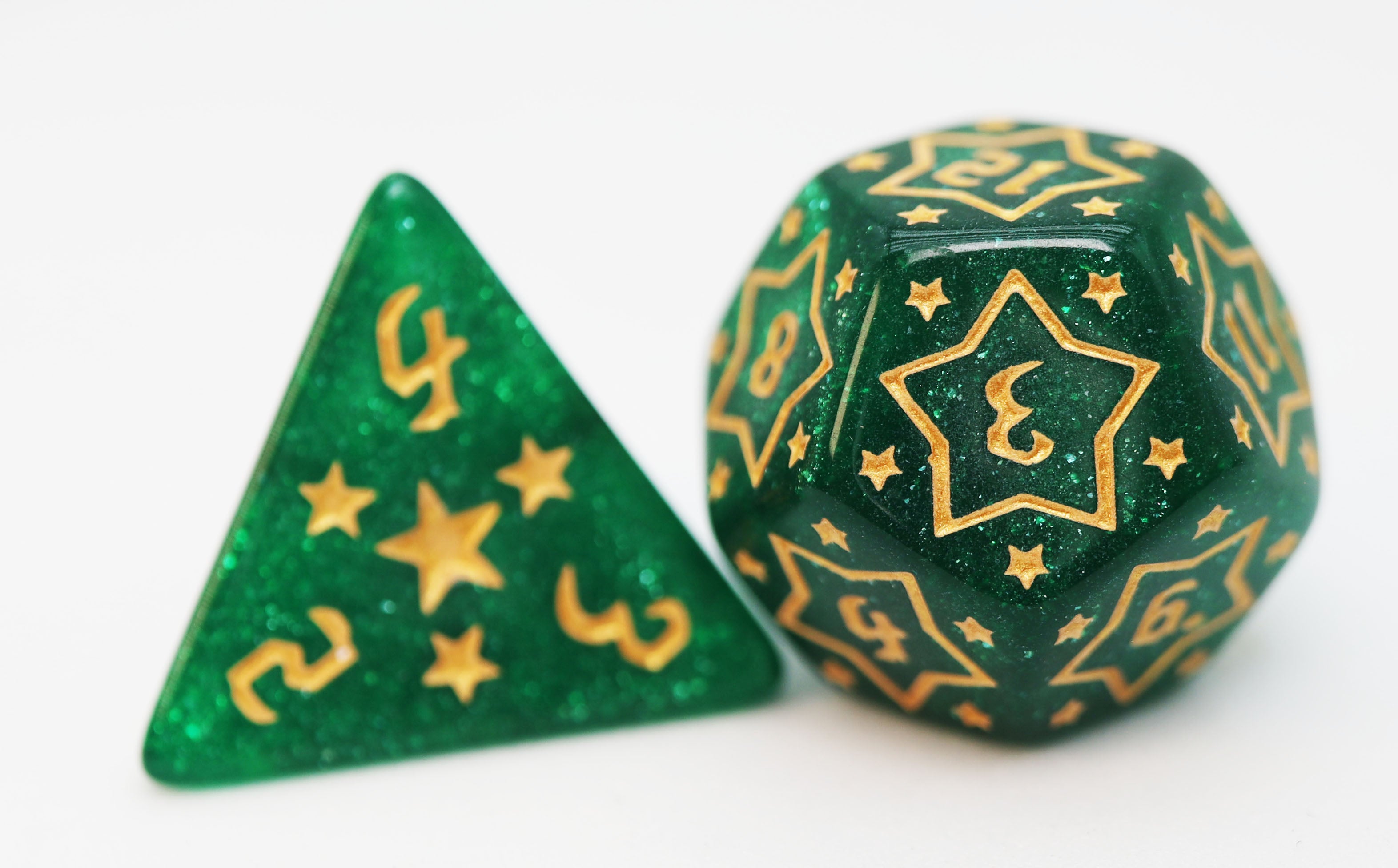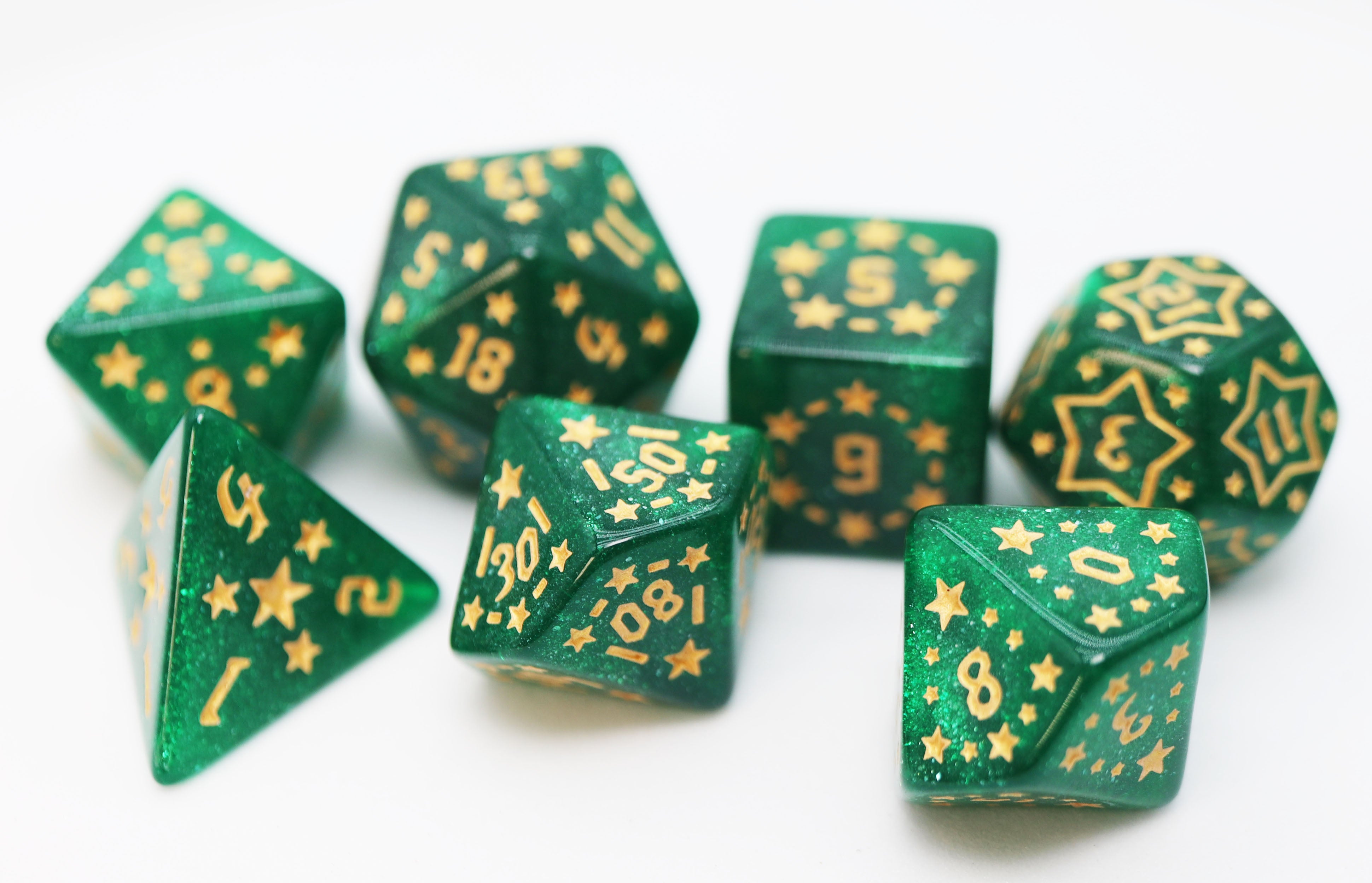 This dice set is out of this world! Flying across the sky are our beautiful Shooting Stars RPG dice set collection. Each set is named after an element that makes up different objects in space!