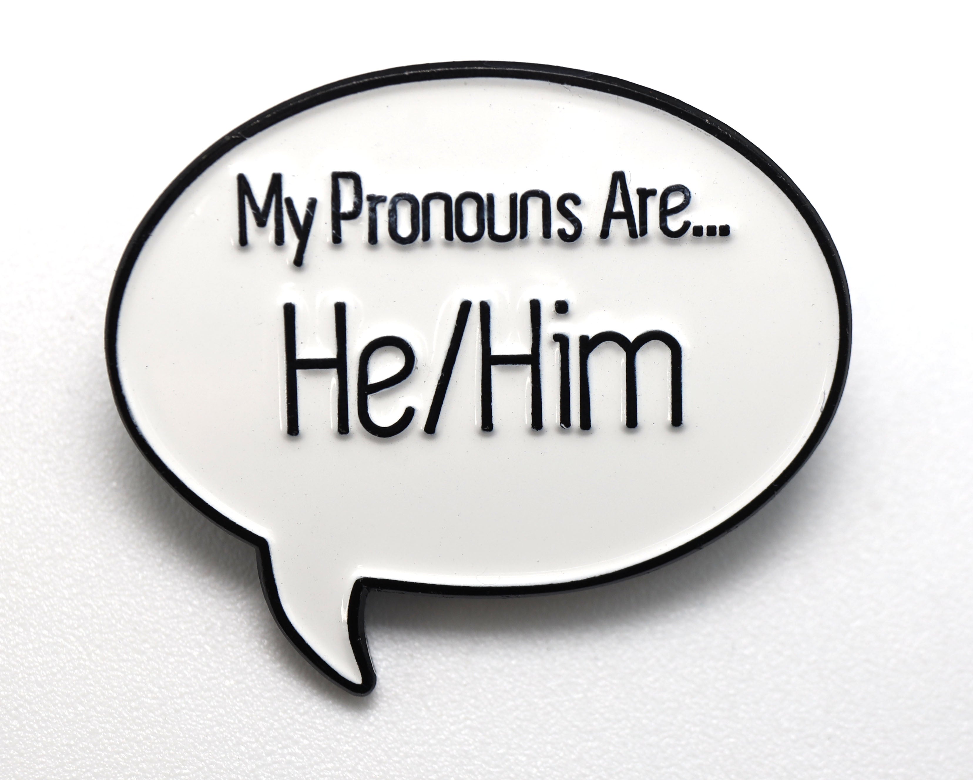 Let others know your pronouns and support awareness of pronoun choices with these soft enamel pins from our pronoun collection
